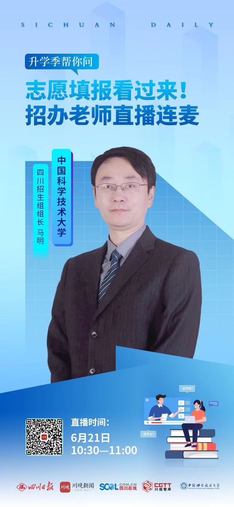 6月21日上午,中国科学技术大学四川招生组组长马明做客直播间,回答了广大考生和家长们关心的问题。本次直播连麦,有哪些“干货”?川观新闻记者第一时间为大家梳理。
