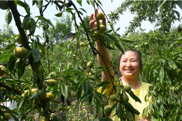 6月20日,走进位于胡石村的内江市百果林种植专业合作社李子种植基地,只见满园李子长势喜人,一个个饱满圆润的李子挂满枝头,青翠欲滴。游客们穿梭其中,享受采摘的乐趣。“听说这里的李子品种挺不错的,有蜂糖李、有凤凰李,所以专门约了朋友一起来采摘。刚刚摘了一颗来尝,口感很甜,准备采一篮子回去和家人一起分享。”游客刘敏兰说。