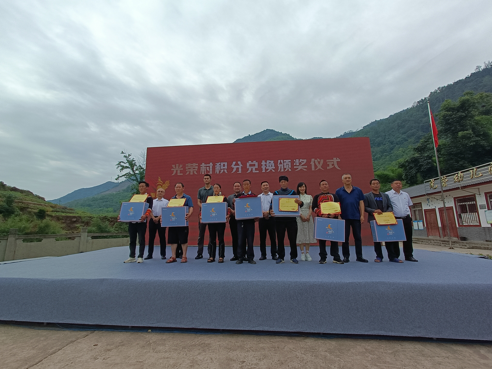 在乐山市,用“积分兑物品”正成为村级事务“积分制”管理的生动实践。6月20日,在马边彝族自治县荣丁镇光荣村,乐山市乡村振兴局牵头主办的“乡村振兴 法治同行”主题活动上,光荣村5月份“产业发展”积分排名靠前的7位村民代表,从帮扶领导手中接过了荣誉证书和奖品。
