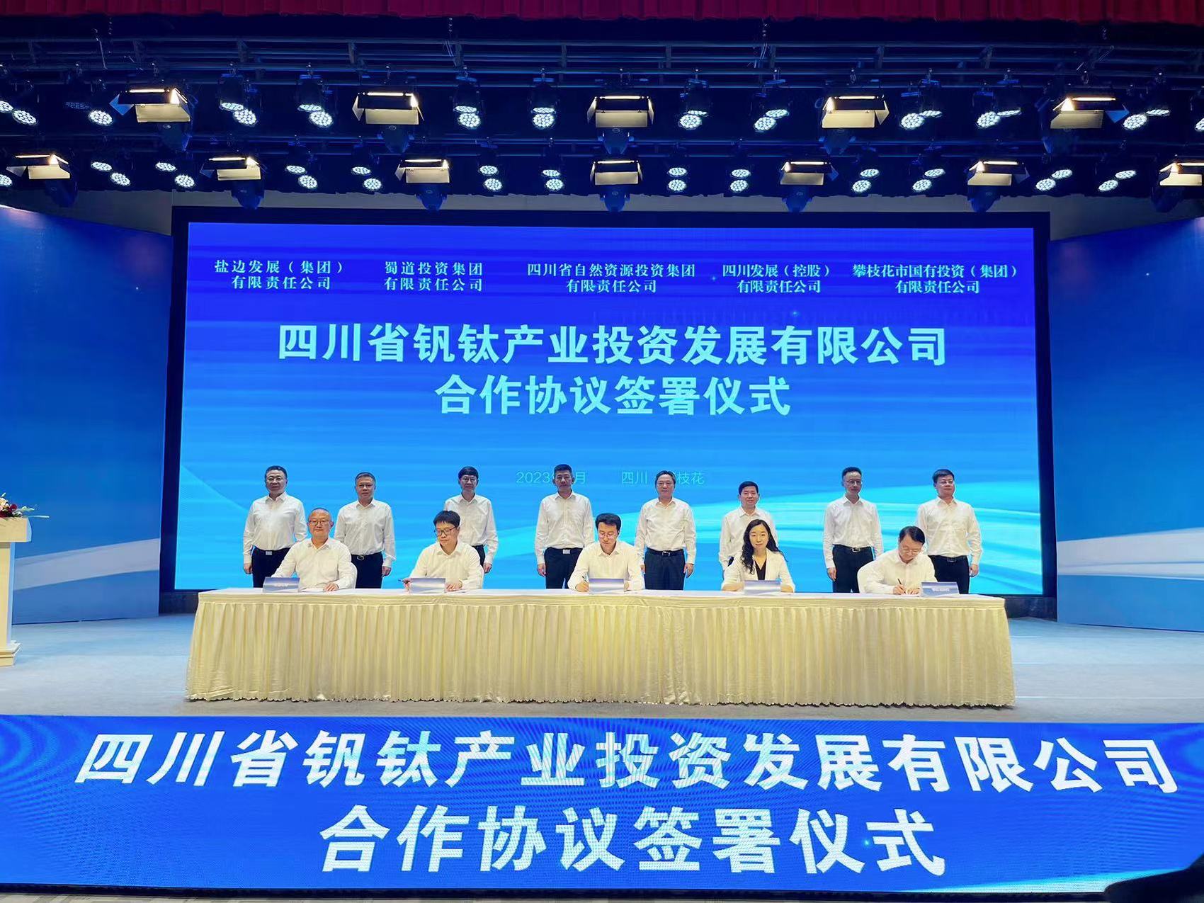 6月21日,四川省自然资源投资集团有限责任公司、四川发展(控股)有限责任公司、蜀道投资集团有限责任公司、攀枝花市国有投资(集团)有限责任公司、盐边发展(集团)有限责任公司在攀枝花签订五方合作协议,组建四川省钒钛产业投资发展有限公司。