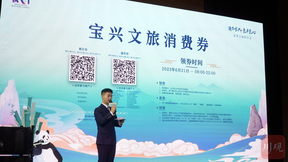 会上,宝兴县推出四条精品旅游线路,推介了2023年重大文旅项目以及大熊猫国际溯源营地、硗碛藏寨·神木垒、达瓦更扎等特色旅游点位和相关活动。活动现场,“宝兴县文化旅游消费季”正式开启,将线上线下同步发放百万文旅消费券。