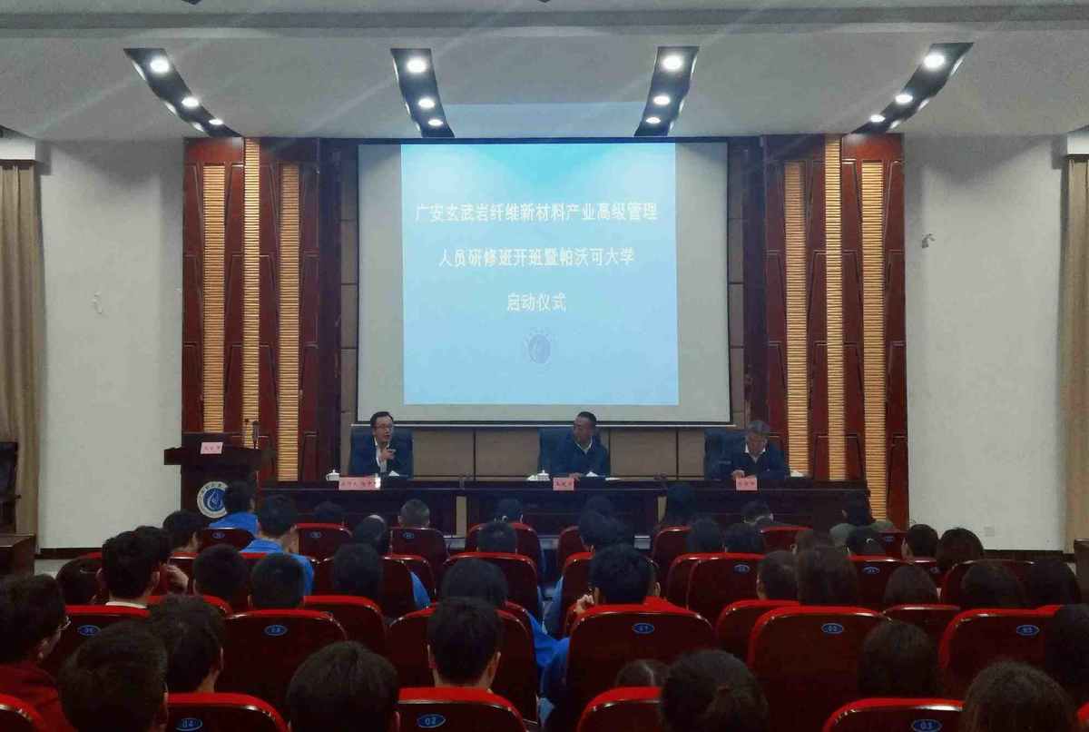 10月27日,“广安玄武岩纤维新材料产业高级管理人员研修班”开班暨“帕沃可大学”启动仪式在广安职业技术学院举行。该研修班旨在培养优秀并全面了解玄武岩产业的科研技术人员、一线技术人员、实验检测人员和市场营销人员,为广安及全国各地玄武岩纤维及复合材料产业输送更多的高级技术工匠人才。