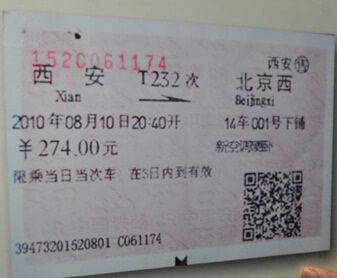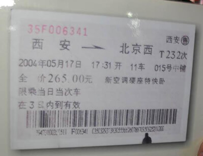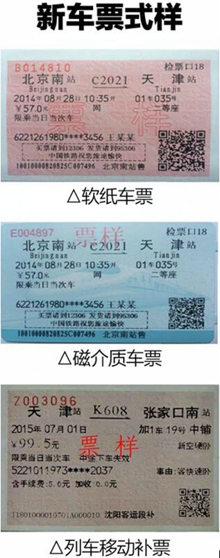 从票面信息看,软纸票经历了两次大的变化。最初,车票上印制的是一维码。2010年,新版火车票将原本票面的条形码升级为二维码,二维码有更大的信息容量,还便于机读,也能较好防伪。(科技含量更高啊)