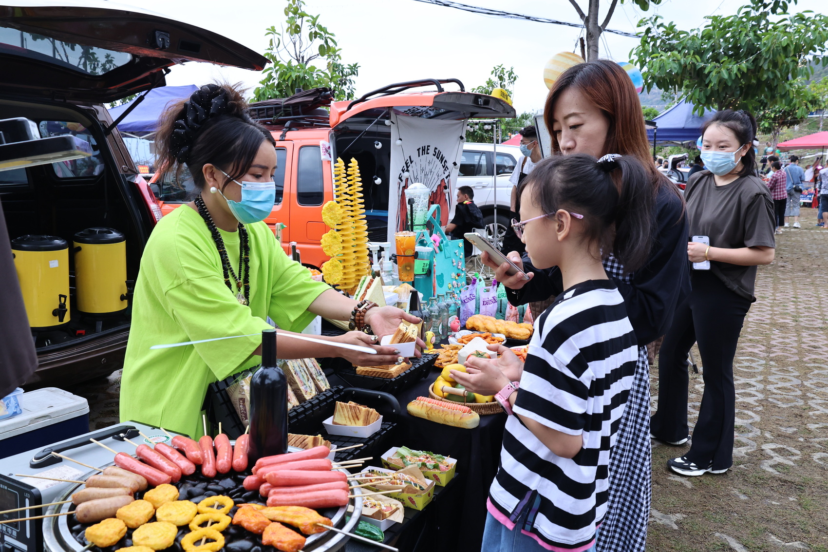 星空夜市共分四个区域,分别为烟火区、非烟火区、酒吧区、露营休闲区。截至目前,夜市入驻各类商家摊铺约50家,聚集了精品首饰、手工文创、桌游类等游购娱业态,及各种网红特色小吃、水果、酒吧、火锅、烧烤等餐饮业态。