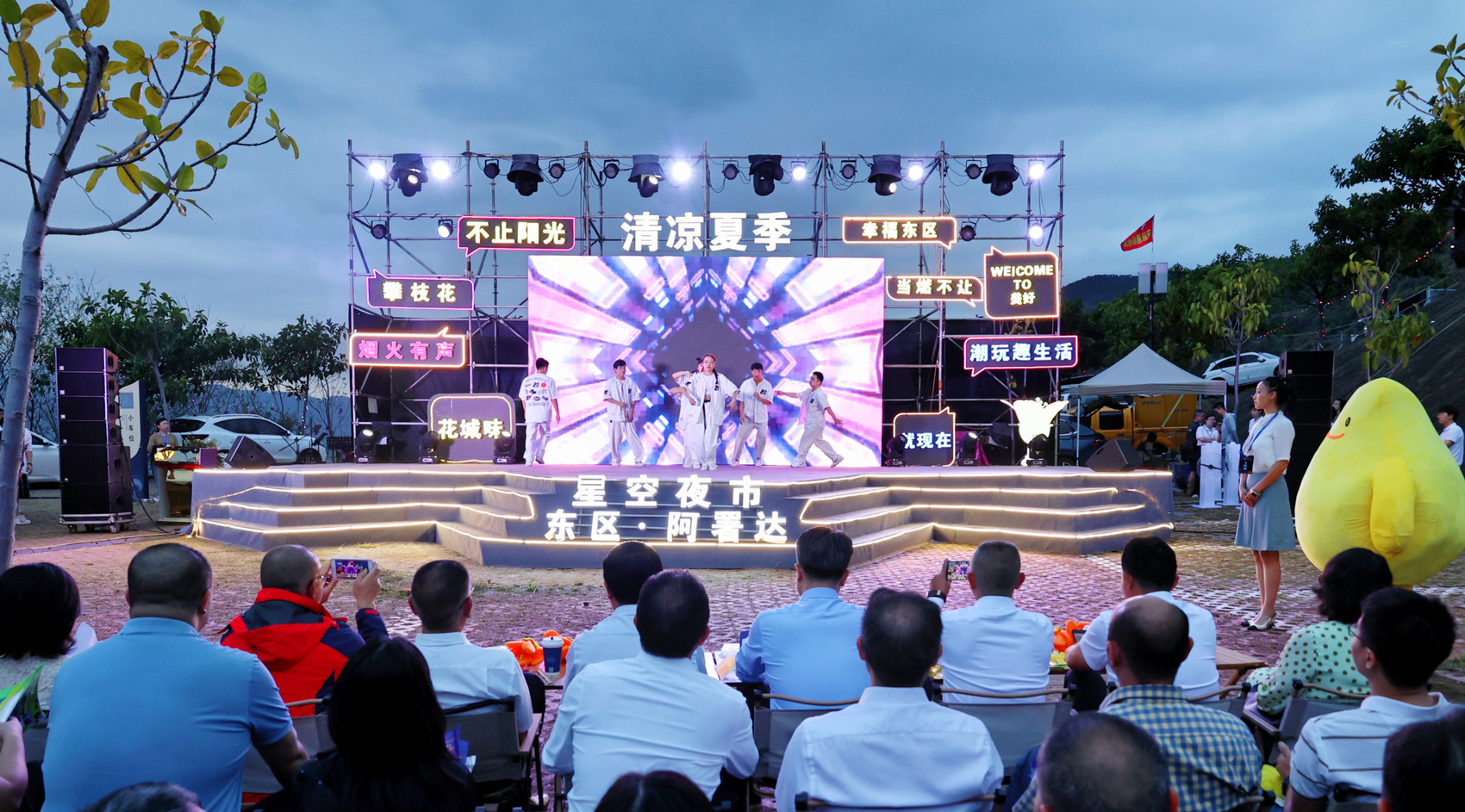 在星空夜市开市仪式上,进行了东区旅游资源、攀枝花清凉夏季系列活动及楚雄州文旅产品推介。随后,《遇见东区》等16个精彩节目拉开了本次主题活动序幕。
