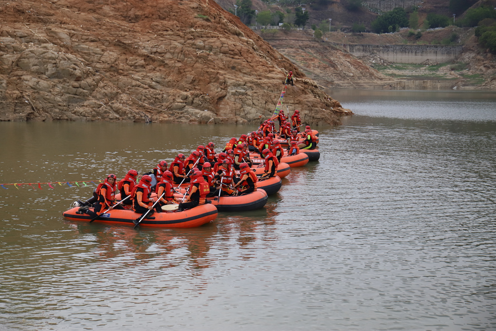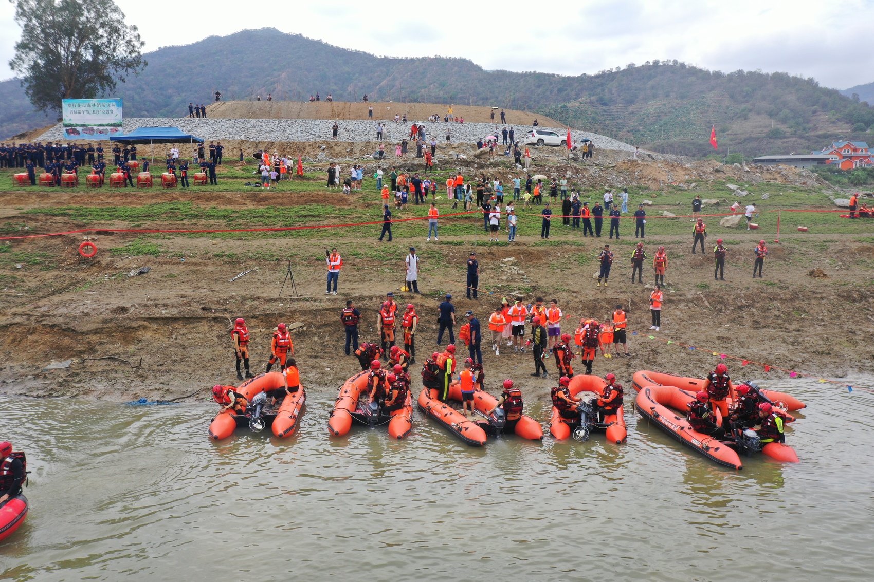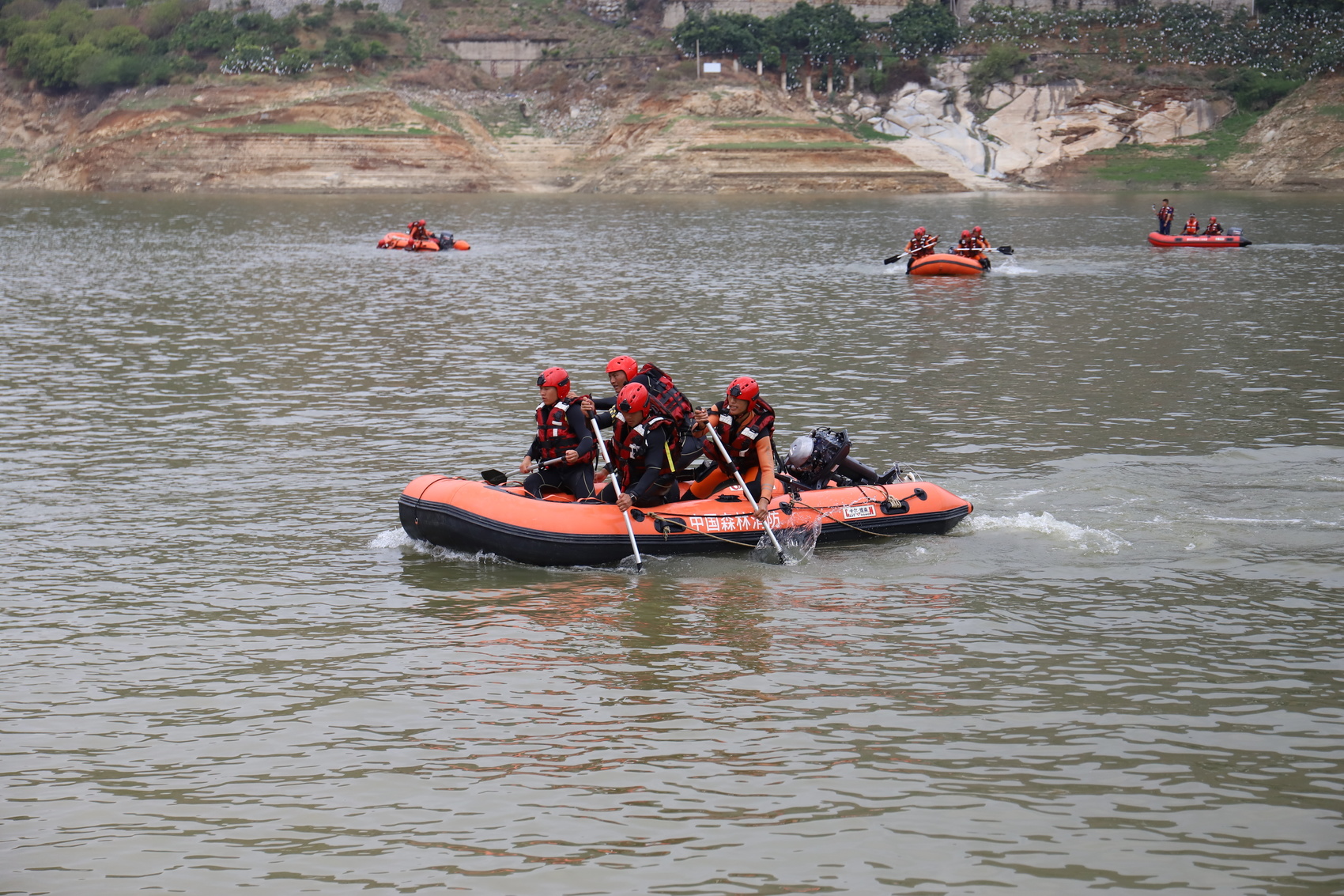 6月22日,攀枝花市森林消防支队用橡皮艇做“龙舟”,在仁和区大竹河水库举行首届端午节“龙舟”竞渡赛。