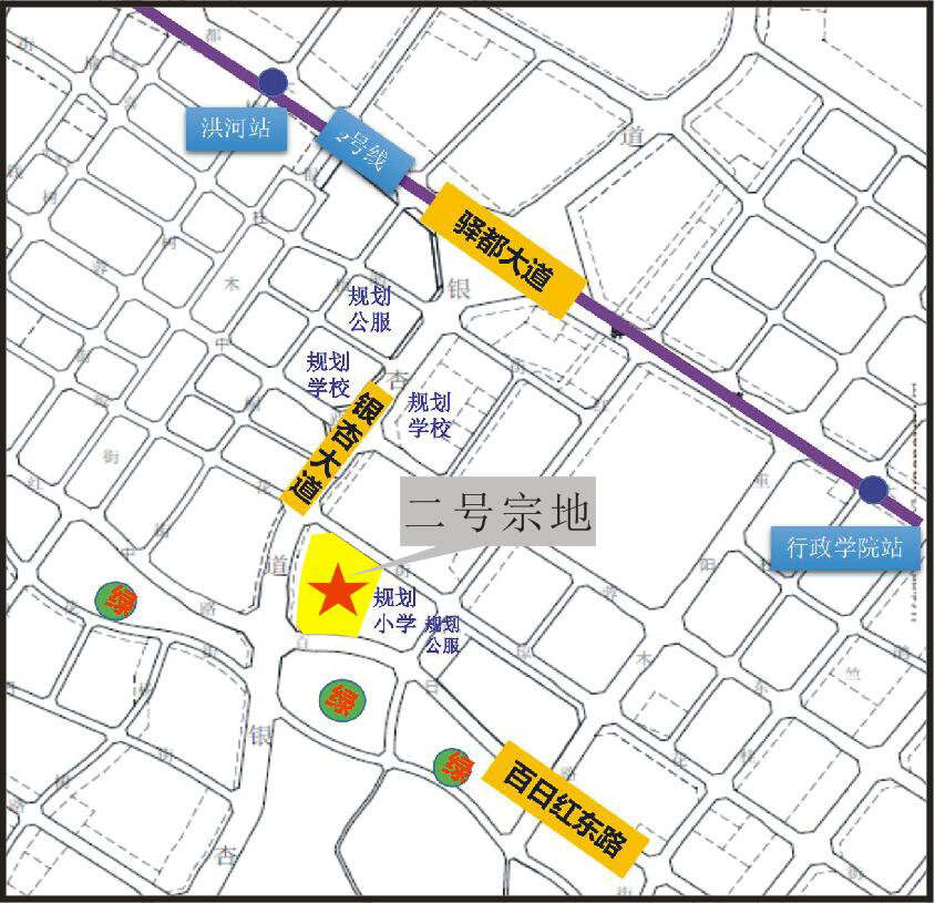 龙泉驿区另一宗地则位于行政学院板块,驿都大道以南。宗地面积39亩,靠近地铁2号线红河站和行政学院站,周边有万科金色城市、人居东城花汇等小区。该地块容积率1.8,起拍楼面地价12800元/㎡,住宅清水限价28000元/㎡。去年该片区迎来多宗地块出让,最终由人居地产拿下。