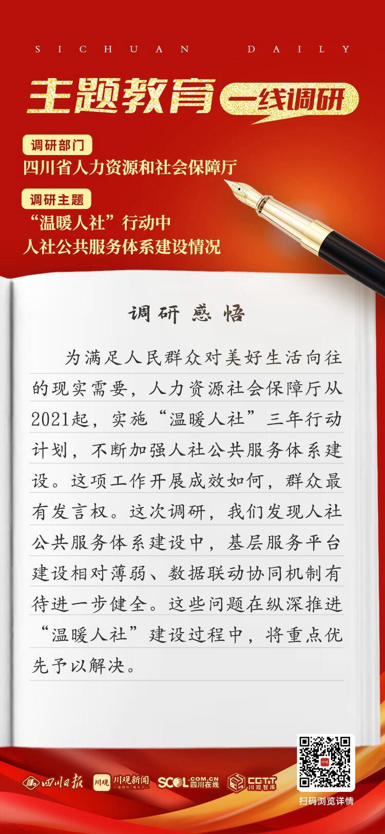 为满足人民群众对美好生活向往的现实需要,人力资源社会保障厅从2021起,实施“温暖人社”三年行动计划,不断加强人社公共服务体系建设。这项工作开展成效如何,群众最有发言权。这次调研,我们发现人社公共服务体系建设中,基层服务平台建设相对薄弱、数据联动协同机制有待进一步健全。这些问题在纵深推进“温暖人社”建设过程中,将重点优先予以解决。