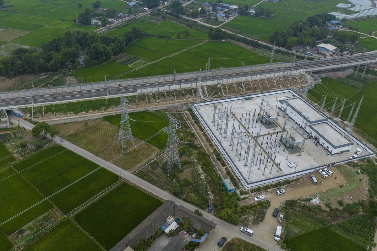 航拍川青铁路绵竹牵引变电所。成兰铁路公司供图