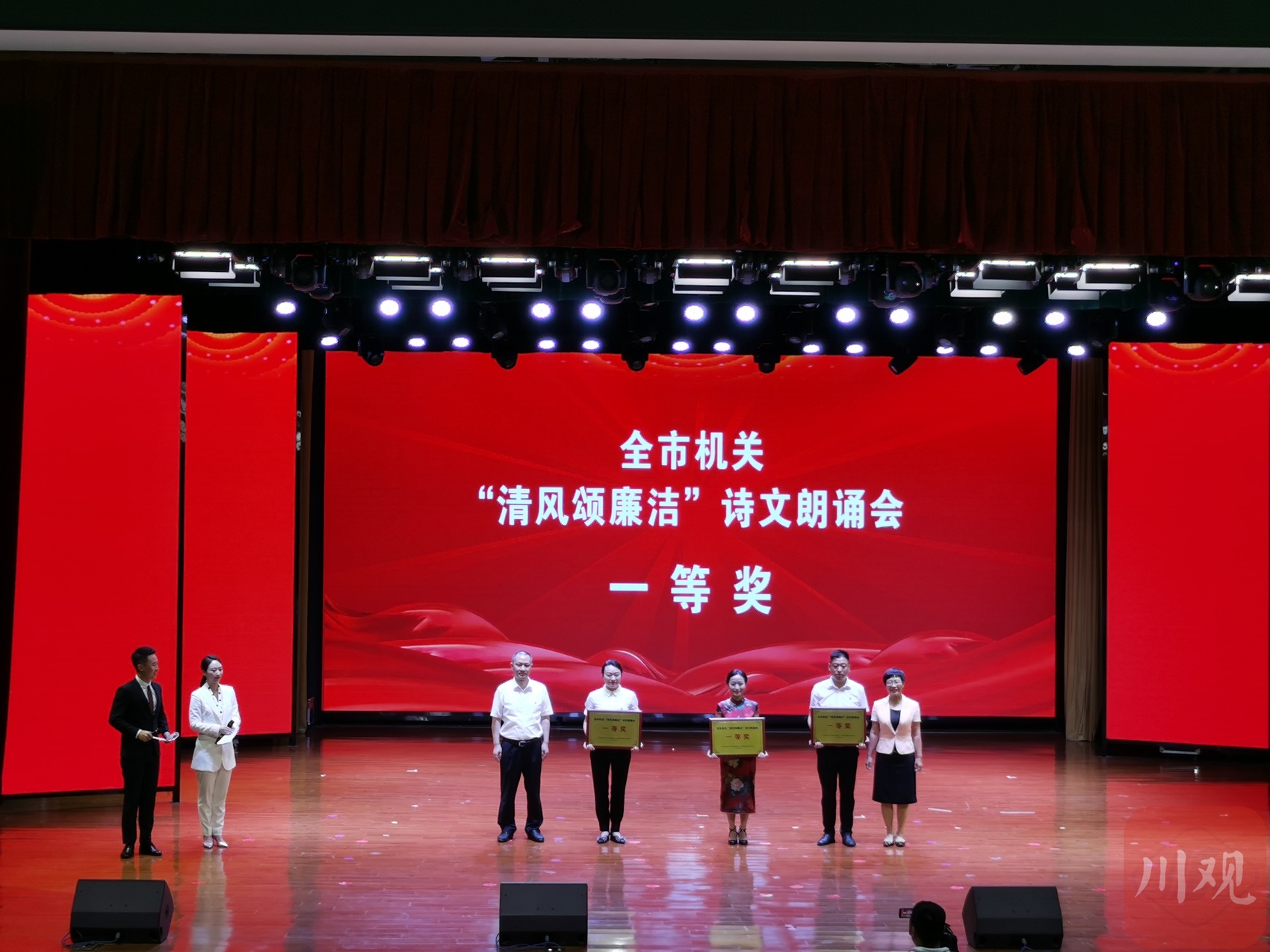 廉洁是什么?6月26日,资阳市机关“清风颂廉洁”诗文朗诵会上,15支参赛队伍以诗朗诵、情景剧等多种方式,结合各自工作岗位,生动演绎了对廉洁的理解,更是敲响了与会人员心中的警钟。