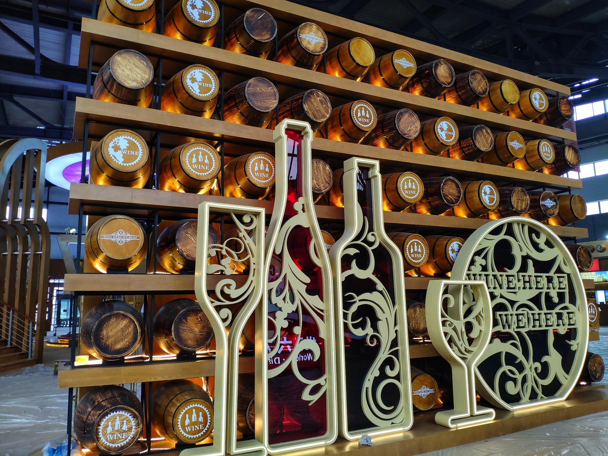 国际精品馆内,设置有一面储存红酒的橡木桶墙。魏杰 摄