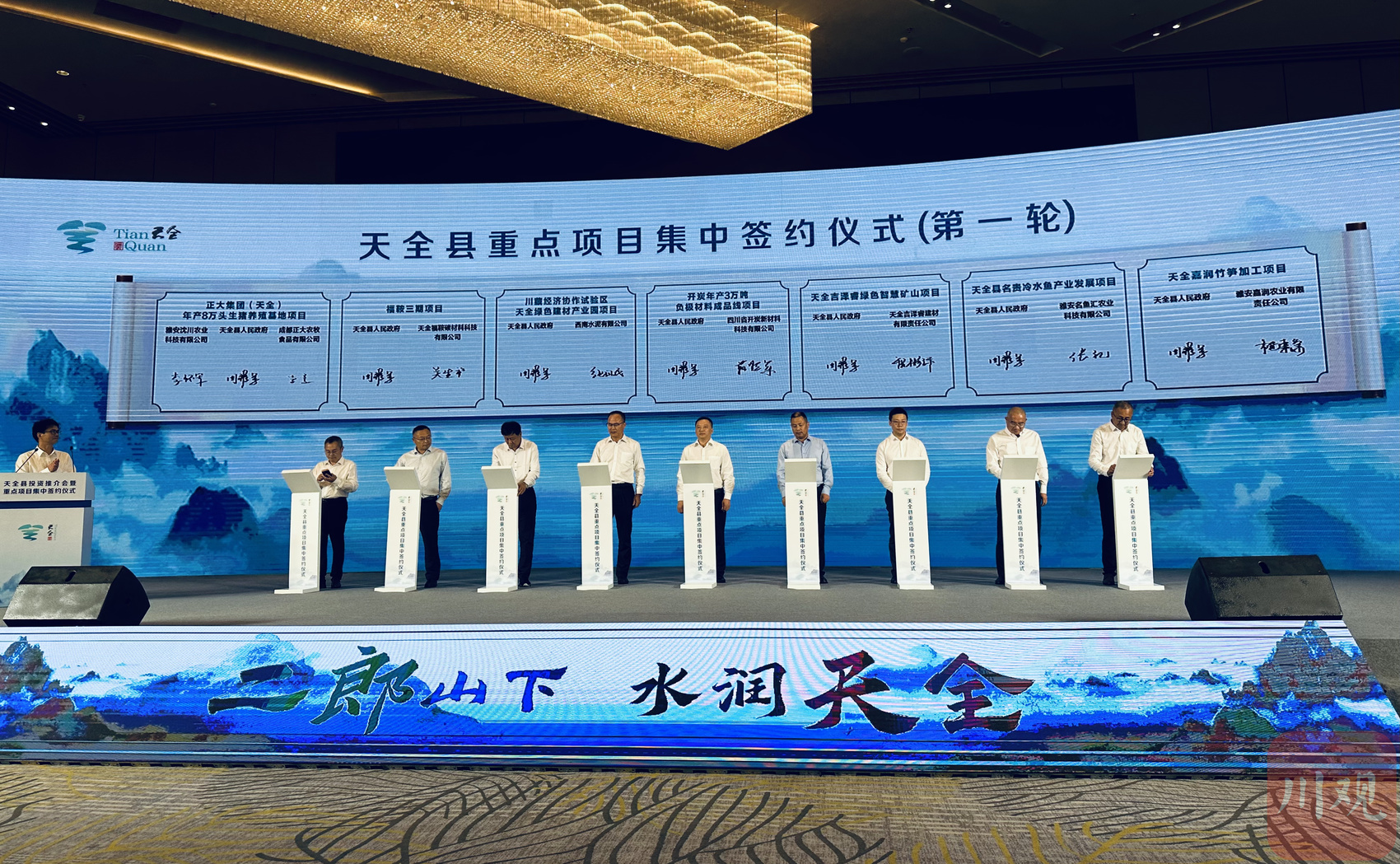 6月27日,天全县投资推介会暨重点项目集中签约仪式在成都举行。现场15个项目集中签约,总投资超过150亿元,涉及新型建材、先进材料、现代农业等多个方面。