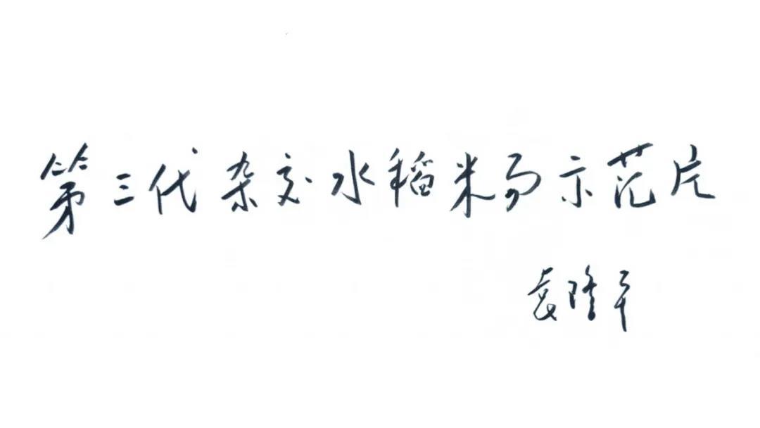 近日,杂交水稻之父袁隆平亲自视频连线了米易县第三代杂交水稻试点团队负责人,在认真听取今年米易县超级稻工作情况汇报后,袁老十分高兴,欣然提笔写下了“第三代杂交水稻米易示范片”,并鼓励试点团队再接再厉,明年能给他一份惊喜。