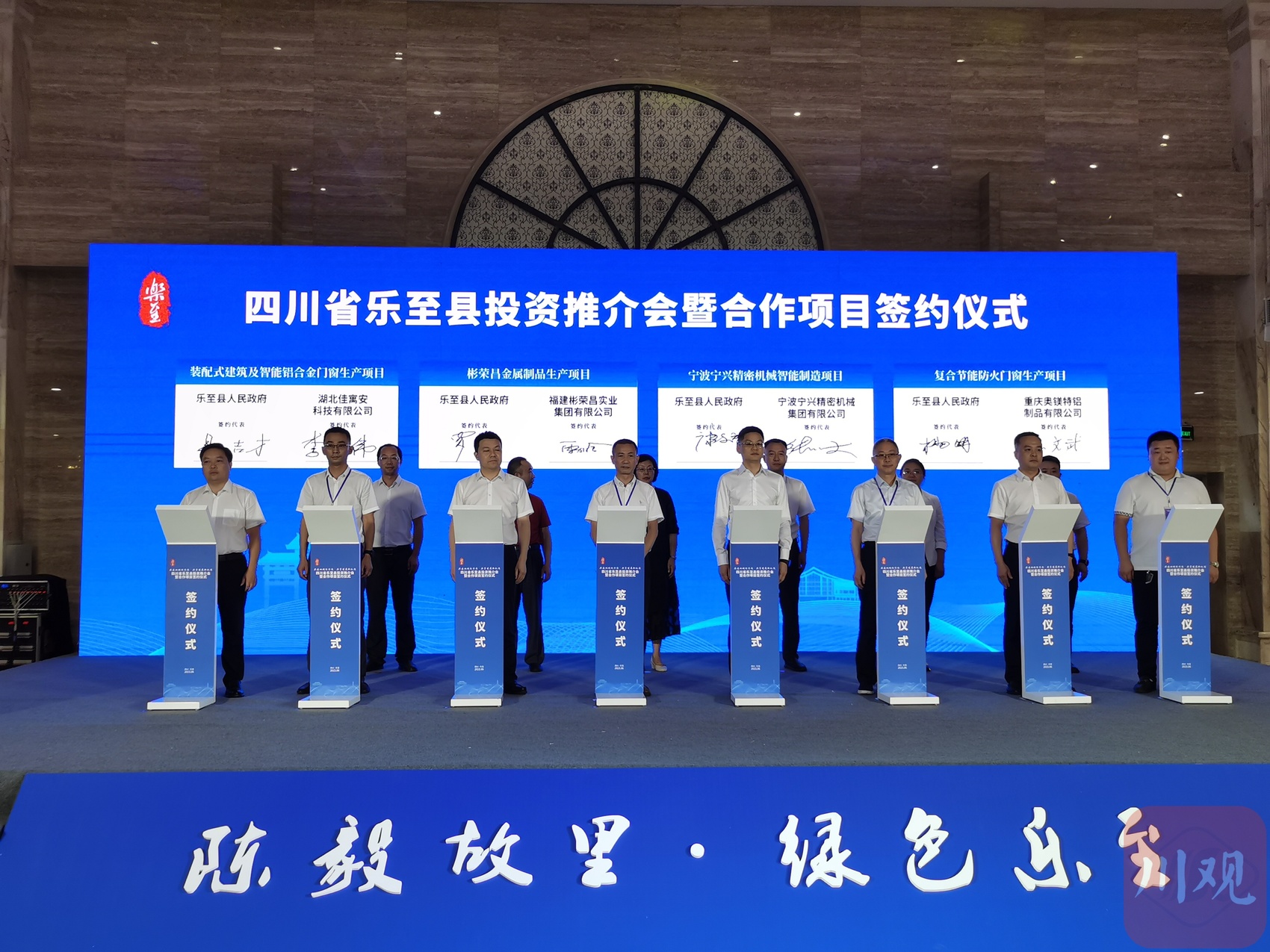 6月27日,“共建双城经济圈·共享发展新机遇”四川省乐至县投资推介会暨合作项目签约仪式上,乐至县与国家电投、天津沃达尔、肇庆创科慧、宁波宁兴精密机械等10余户国际国内知名企业签约一批聚集性强、带动性强、辐射力强的制造业项目,不断扩大乐至产业发展“朋友圈”。