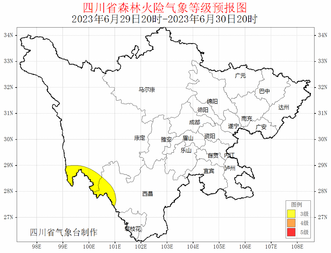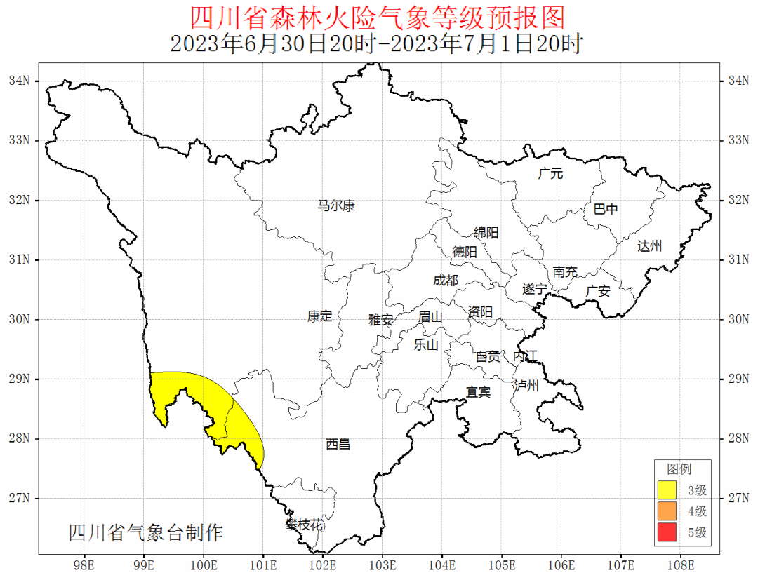 据最新气象资料分析:6月28日20时~7月1日20时,川西高原南部和攀西地区大部多云间阴天,部分地方有阵雨或雷雨,局部地方森林火险气象等级可达3级。