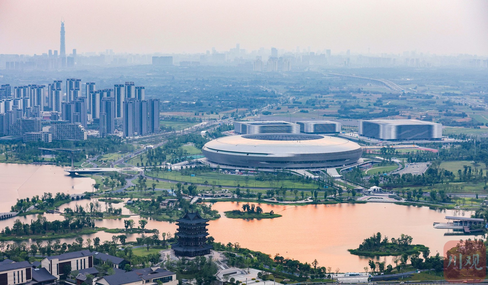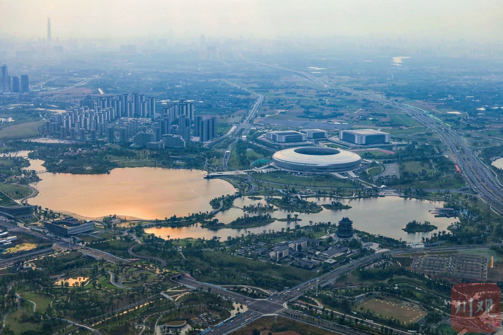 6月27日,成都第31届世界大学生夏季运动会即将进入一个月倒计时之际,15名“C视觉”签约摄影师搭乘“川观号”直升机,飞临大运会主场馆,扶摇百米高空之上,远眺夕阳下东安湖之美。