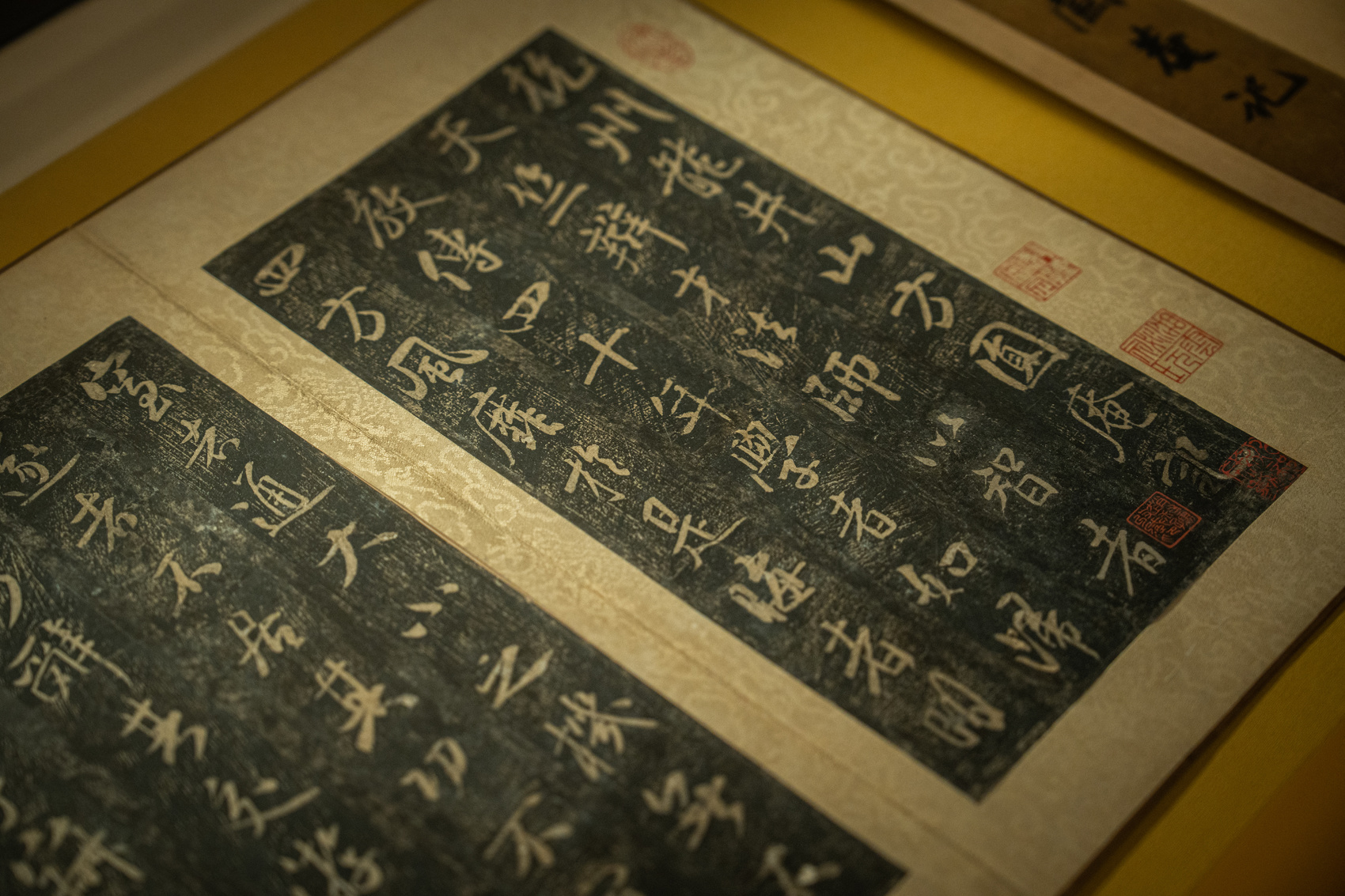 简介:《淳化阁帖》是我国历史上第一部大型书艺法帖,集宋代以前书法精品之大成,堪称我国书法艺术的一座宝库。北宋淳化三年(公元992年),宋太宗赵炅命翰林侍书王著将内府所藏历代墨迹经双钩描摹后,刻在石板或木板上,再拓印装订成帖,名《淳化阁帖》。《淳化阁帖》共10卷,收录了中国先秦至隋唐1000多年的书法墨迹,包括帝王、臣子和著名书法家等103人的420篇作品,最终确立了王羲之的“书圣”地位,开启了官刻丛帖之端,被后世誉为中国法帖之冠和“丛帖始祖"。肃府本《淳化阁帖》是朱元璋第十四子朱瑛肃王府宋初拓印本《淳化阁帖》的铜磐石草刻。始刻于明万历四十三年(公元1615年),历时7载,完成两面刻文的帖石共144块。此次展出的两块刻石有张芝的《秋凉平善帖》、崔瑗的《贤女帖》、钟繇的《宣誓表》和褚遂良的《潭府帖》等。