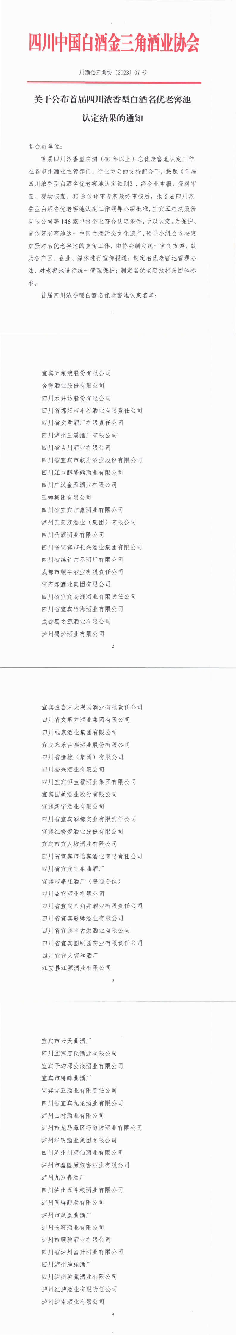 6月29日,四川中国白酒金三角酒业协会公布首届四川浓香型白酒名优老窖池(40年以上)认定结果,全省一共有146家申报企业符合认定条件,予以认定。