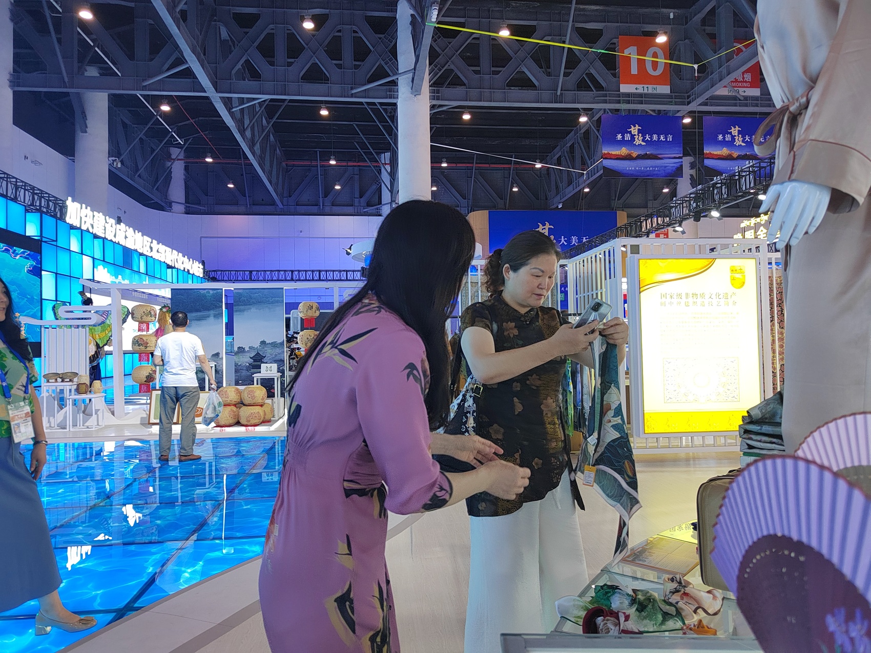 在南充馆丝纺服装区域的展示情景。 张斌 摄