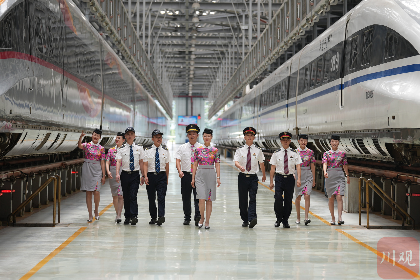蓉港高铁开通在即,6月30日,由首发司机、乘务员、随车机械师组成的首发班组,在中国铁路成都局集团公司成都动车段集体亮相。他们,将登上明天8时48分从成都东站发出的G2963次列车,这将是蓉港高铁的首发列车。