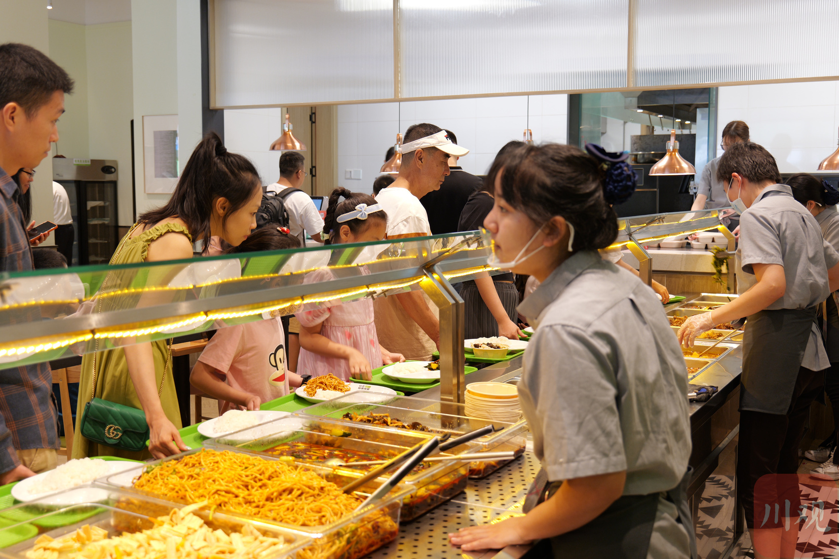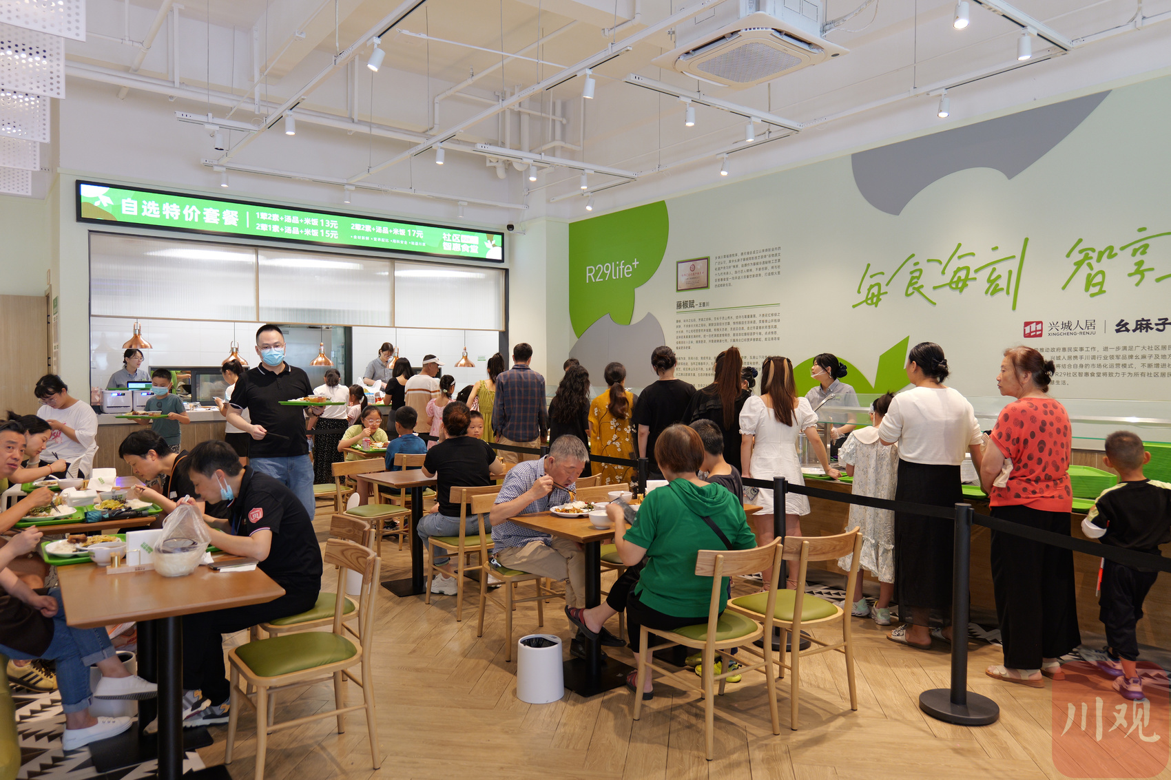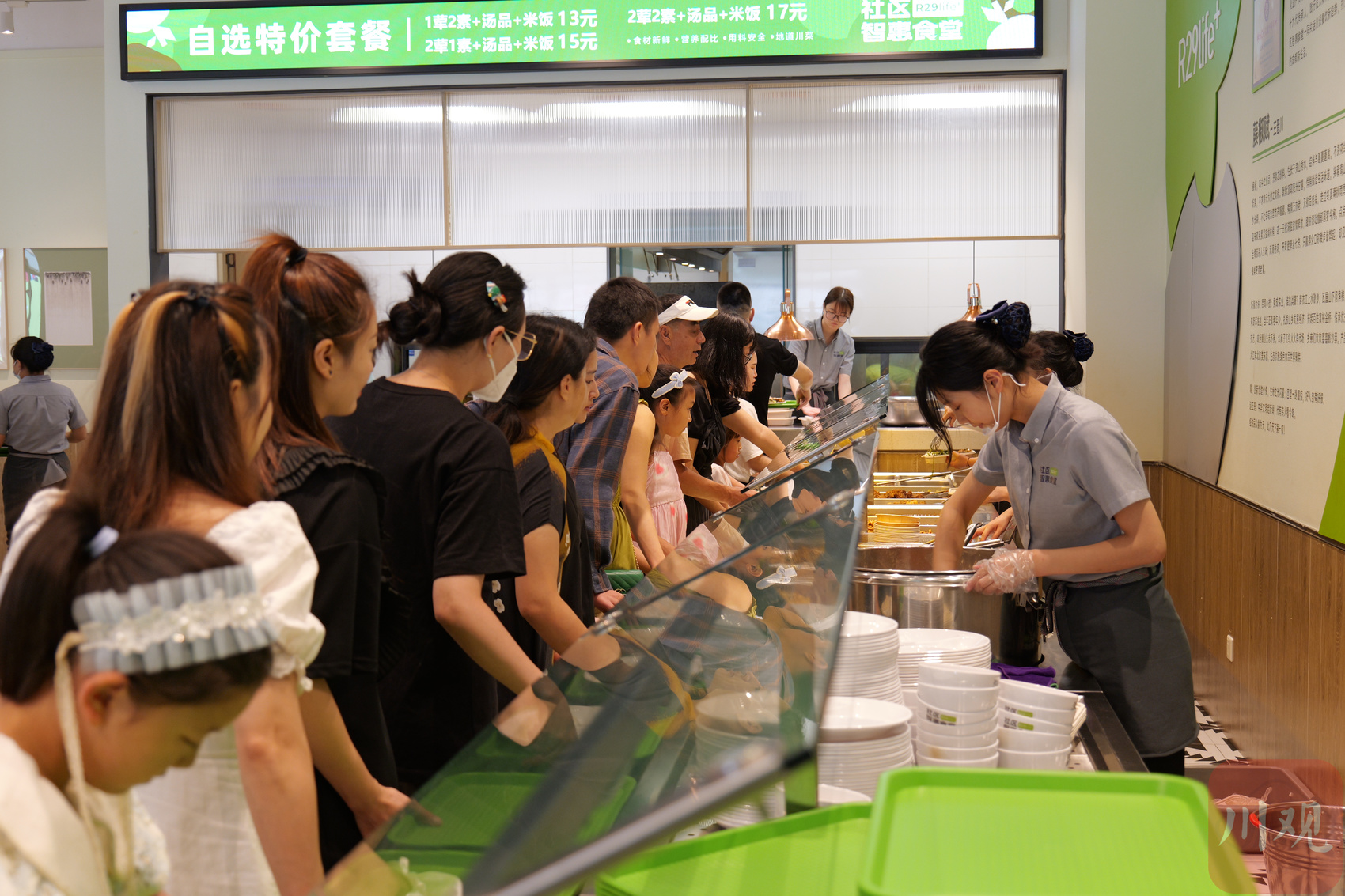 近日,位于成都市锦江区成龙路街道粮丰社区的R29社区智惠食堂在网上火爆出圈。6月29日,记者在现场看到,从上午十一点开始,直至下午两点,该社区食堂始终处于排长队的现象,不光有周围居民及附近上班族前来就餐,不少稍远一些的食客也慕名前来打卡。