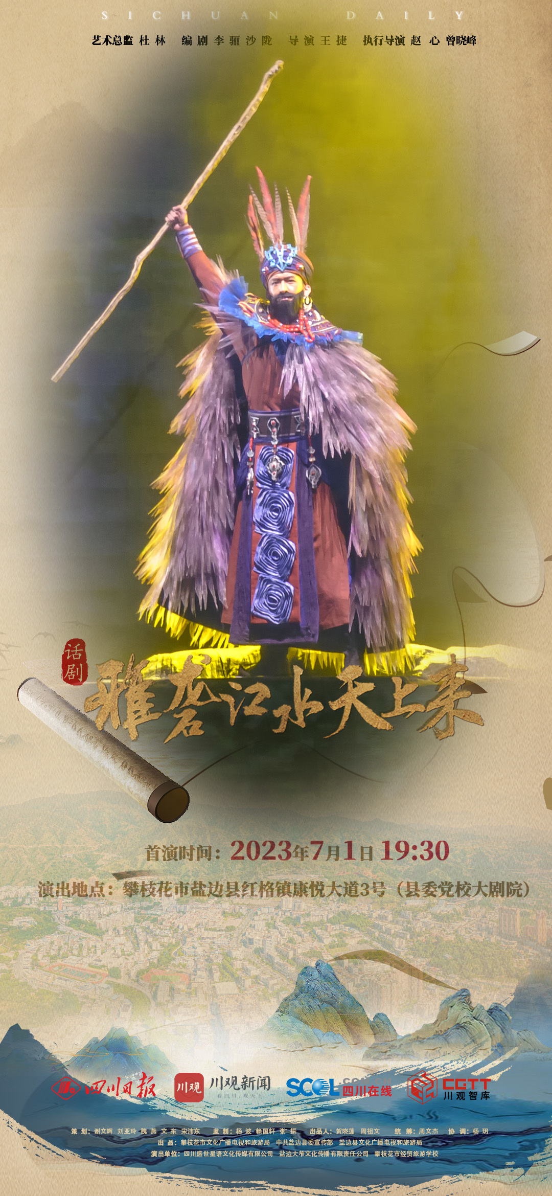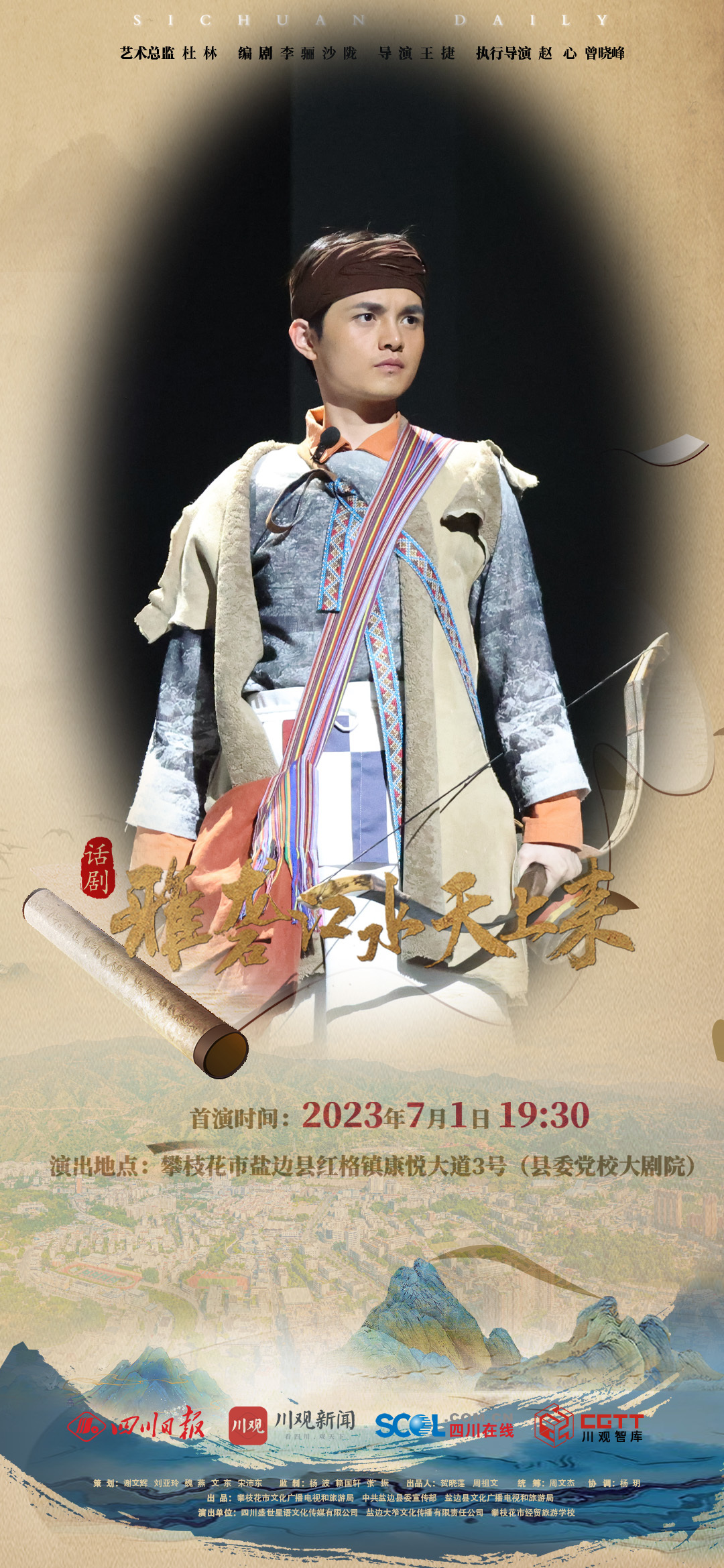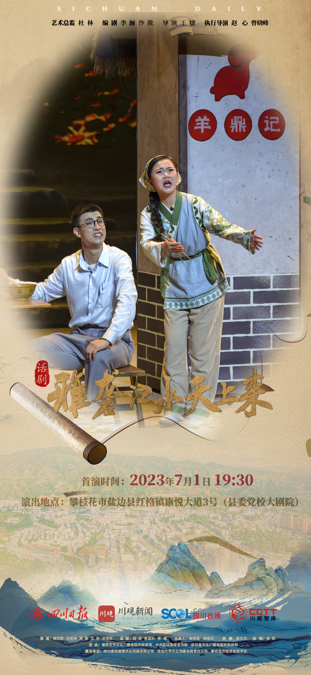 你从昆仑山走来,化作若水滋养万代,一路穿山越岭如此豪迈,一幅画卷从此打开……“笮酒”两千多年的酿造传承,“羊鼎记”羊肉米线的独特魅力,都将在这部话剧中呈现。在话剧首演前,我们用一组海报带你抢先看“好戏”,感受光影舞台的力量。