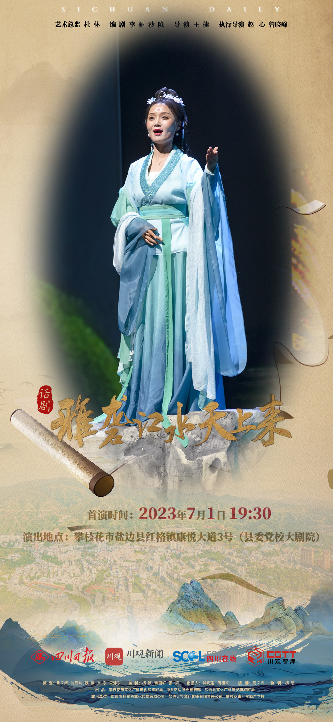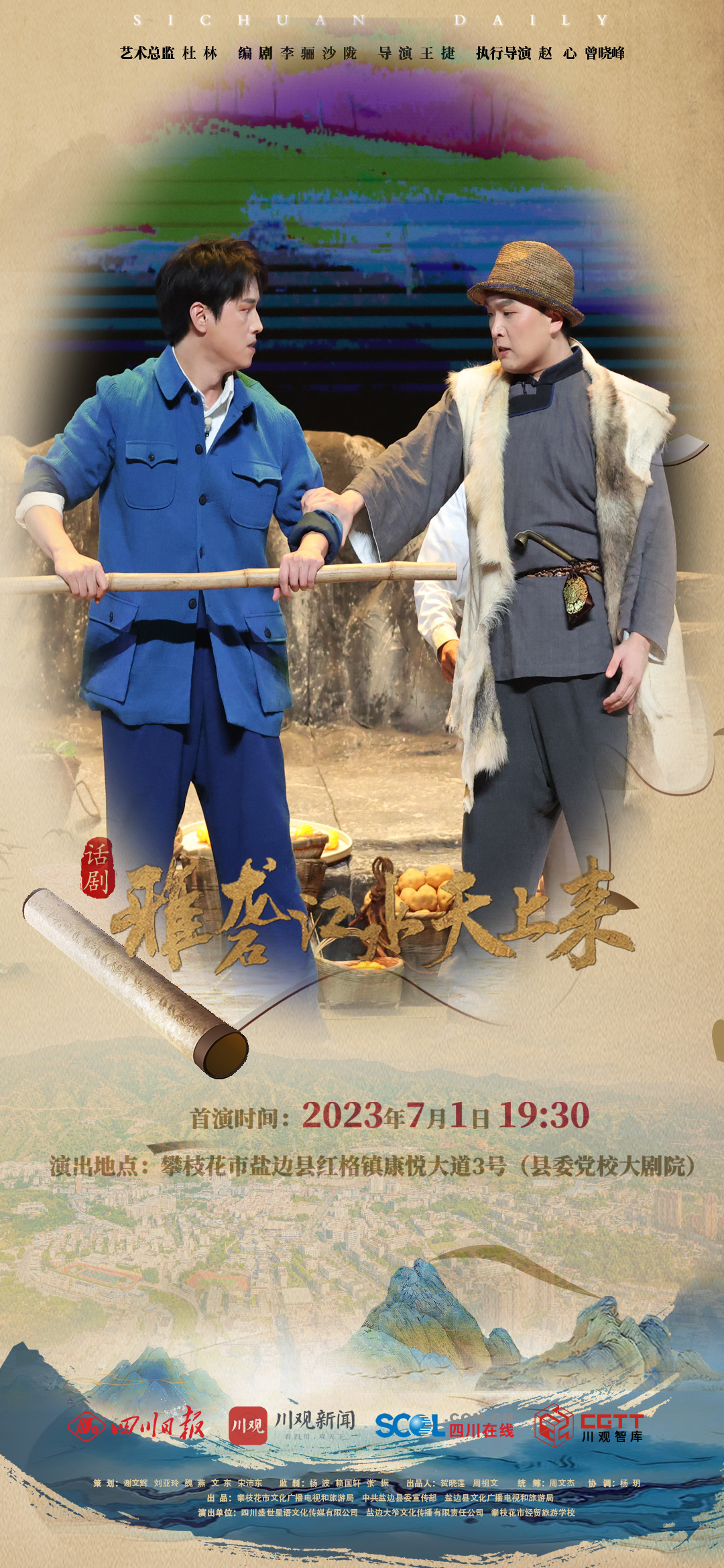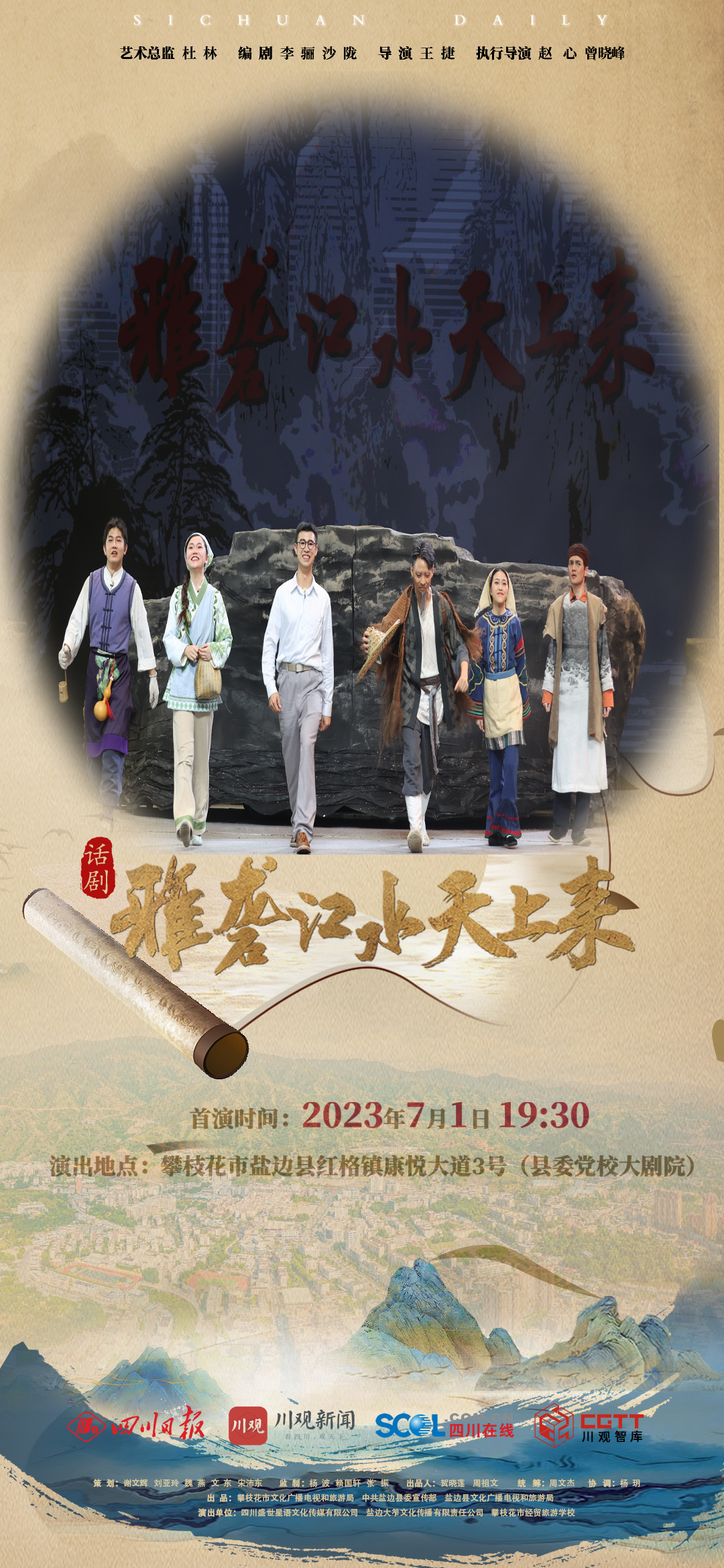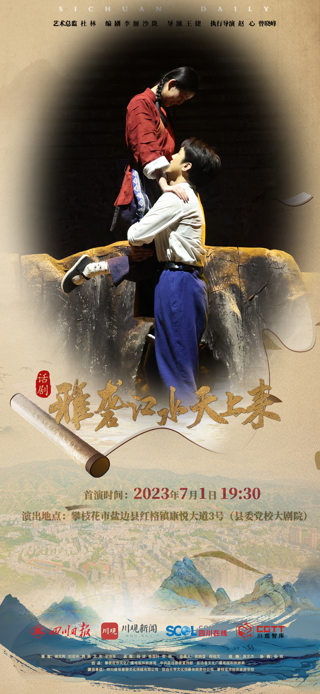 从上世纪五十年代肩挑背扛,撑起三线建设大后方,到移民搬迁支持二滩水电站建设,再到新时代建设滋味盐边新家园,7月1日晚,笮山若水时光之旅即将开启——盐边县原创大型话剧《雅砻江水天上来》将与观众见面,带来一场穿越时空的光影浪漫,在光影声色中唤醒盐边记忆。