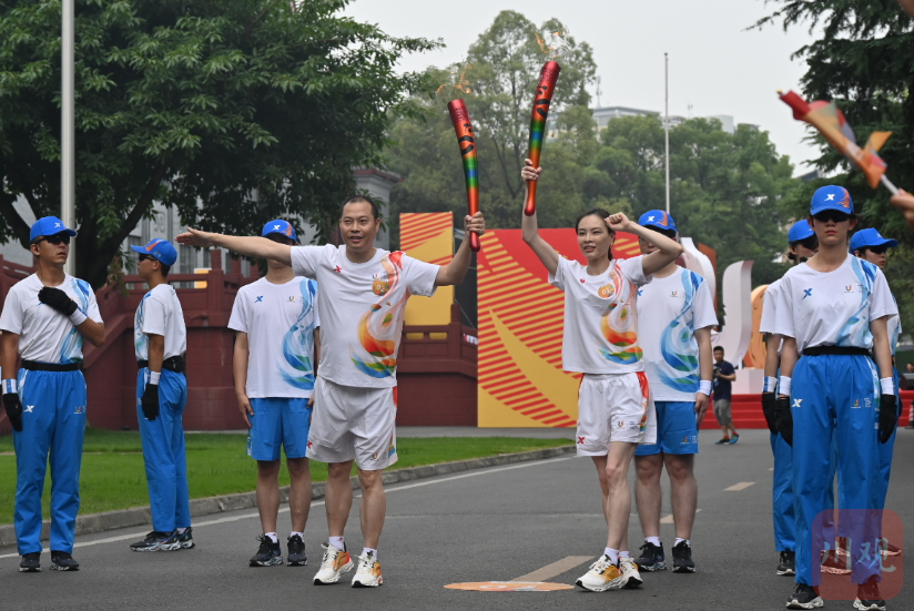 7月2日,成都大运会火炬传递回到成都,首站来到四川大学。火种盆和“蓉火”相继点燃后,第1棒火炬手、中国跳水名将、“奥运五金王”吴敏霞接过火炬,在众人的欢呼中,高举火炬昂首跑出会场。