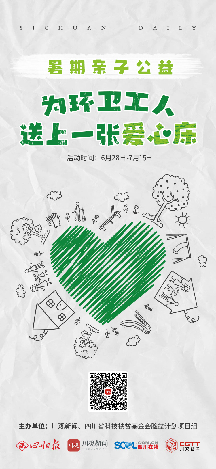 7月2日午后,成都望平街。天气有些闷热,环卫车停在路边,56岁的环卫工人姚荣富,收到9岁的姚琬扬送来的爱心床。得知了彼此同姓后,小姚和老姚高兴地攀谈起来……