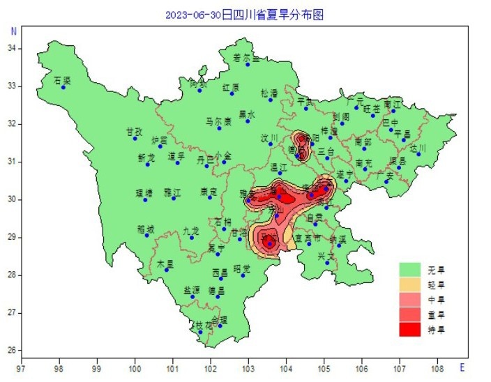2023年6月30日四川省夏旱分布图
