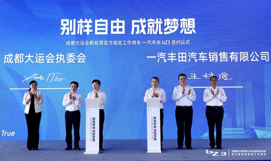 7月2日,成都大运会新能源官方指定工作用车——一汽丰田bZ3交车仪式成功举行,一汽丰田共投入160辆bZ3作为成都大运会新能源官方指定工作用车,助力成都大运会高效举办。
