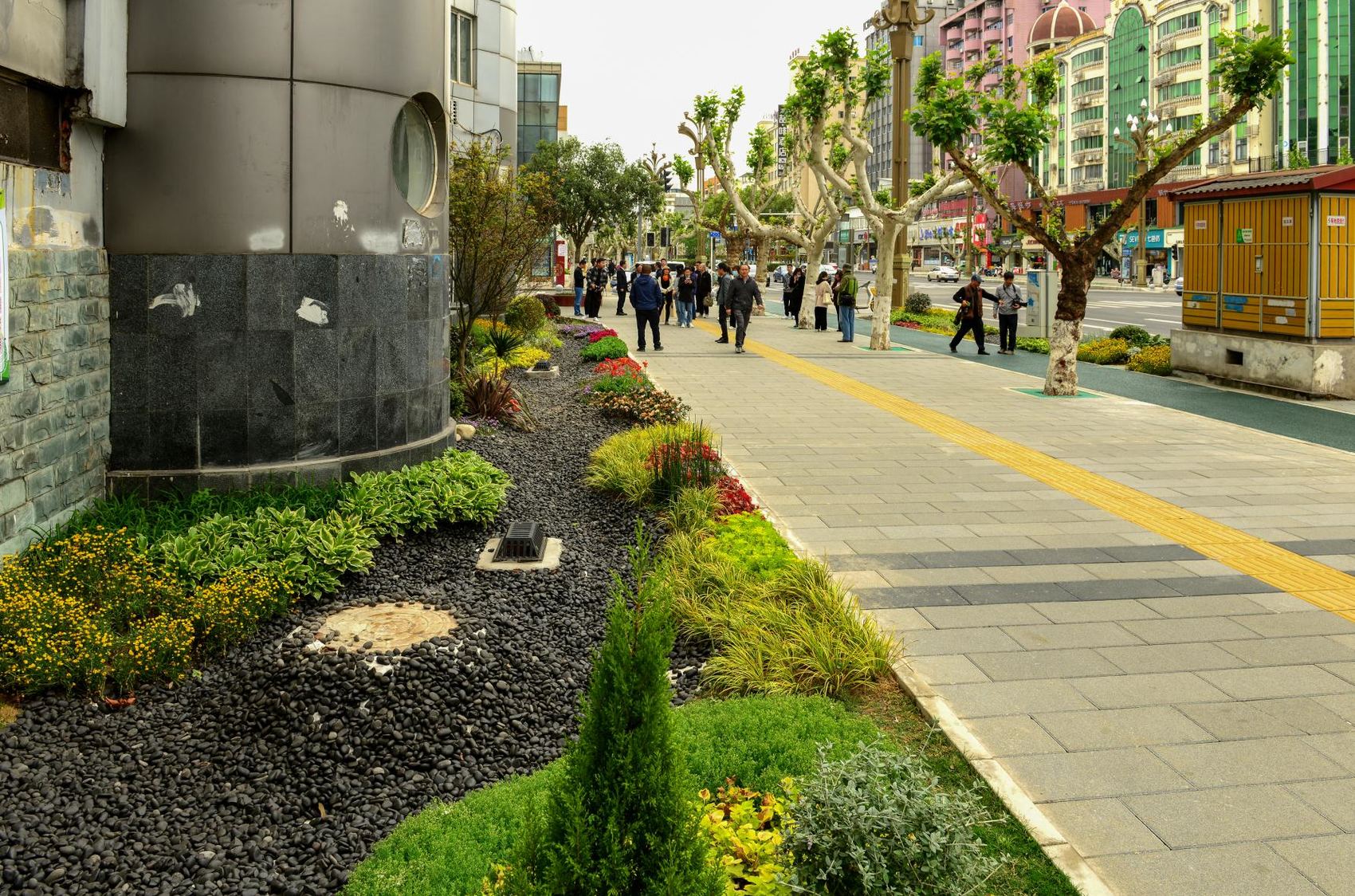通过路沿石开孔、下沉式绿地、雨水花园等改造,雨水可以透过绿地进入地下管网,实现“大雨不积水,小雨不湿鞋”。不仅如此,利州东路的改造还实施了疏林透景、增花添彩、景观协同等,增加剑门关关楼、曌字造型等广元特色元素,周边“颜值”也同步提升。