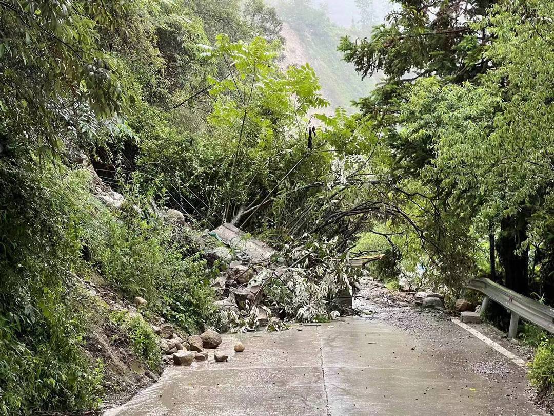 强降雨导致进出海螺沟景区道路中断,猫磨公路往泸定方向因路面不断有落石交通中断。