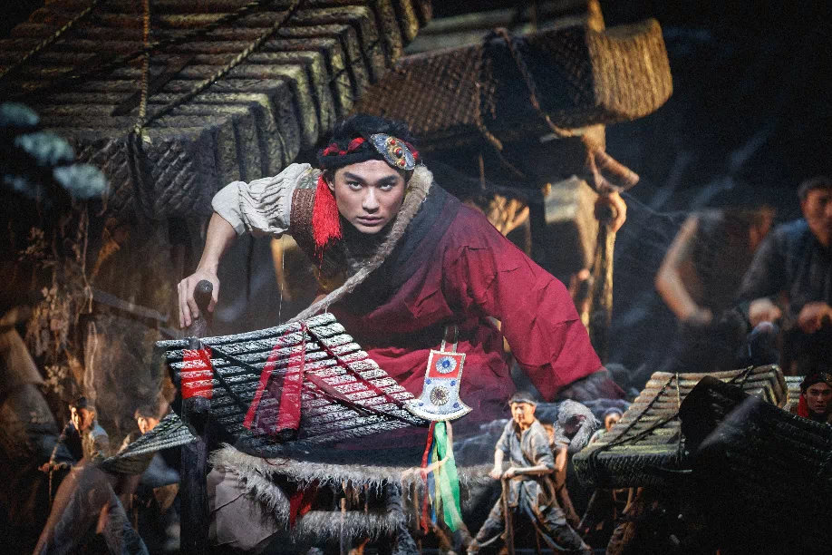 在茶生替代掌拐出行前,剧中用群舞形式展现了一场特别深重的告别。“在当时的条件下,背夫们前往藏区,面对这样极其恶劣的自然,前方就是一条生死未卜的路。”马东风解释,在采风时有老背夫告诉她,一行人走在山路上,本来正跟后面的人聊天,聊着聊着发现没声了,一转头,已不知是什么时候,人就没了。“他们身处苦难却勇敢坚毅,吃苦耐劳,凭着乐观诙谐的精神,一步一步走出了这样一条堪称奇迹的古道。”