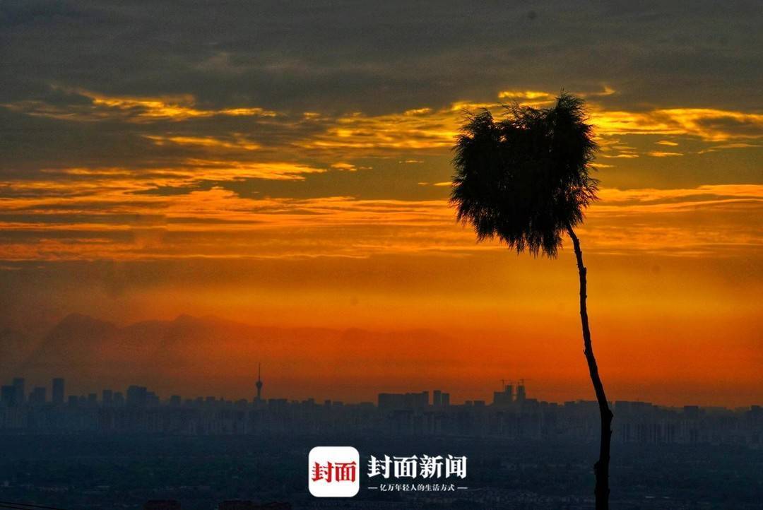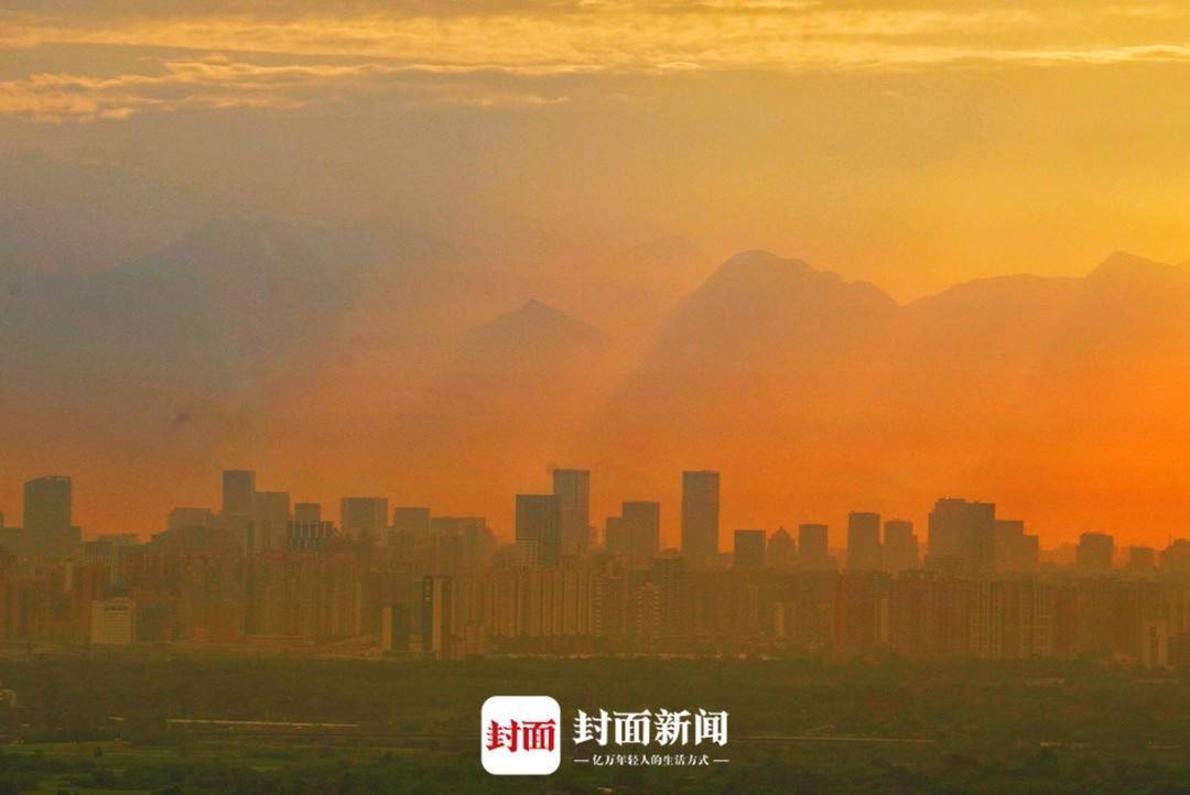 连续阴雨天气结束,成都迎来晴好天气。黄昏时分,天空出现美丽晚霞。霞光将城市和西边山峰勾勒出迷人的剪影。封面新闻记者 杨涛 摄影报道