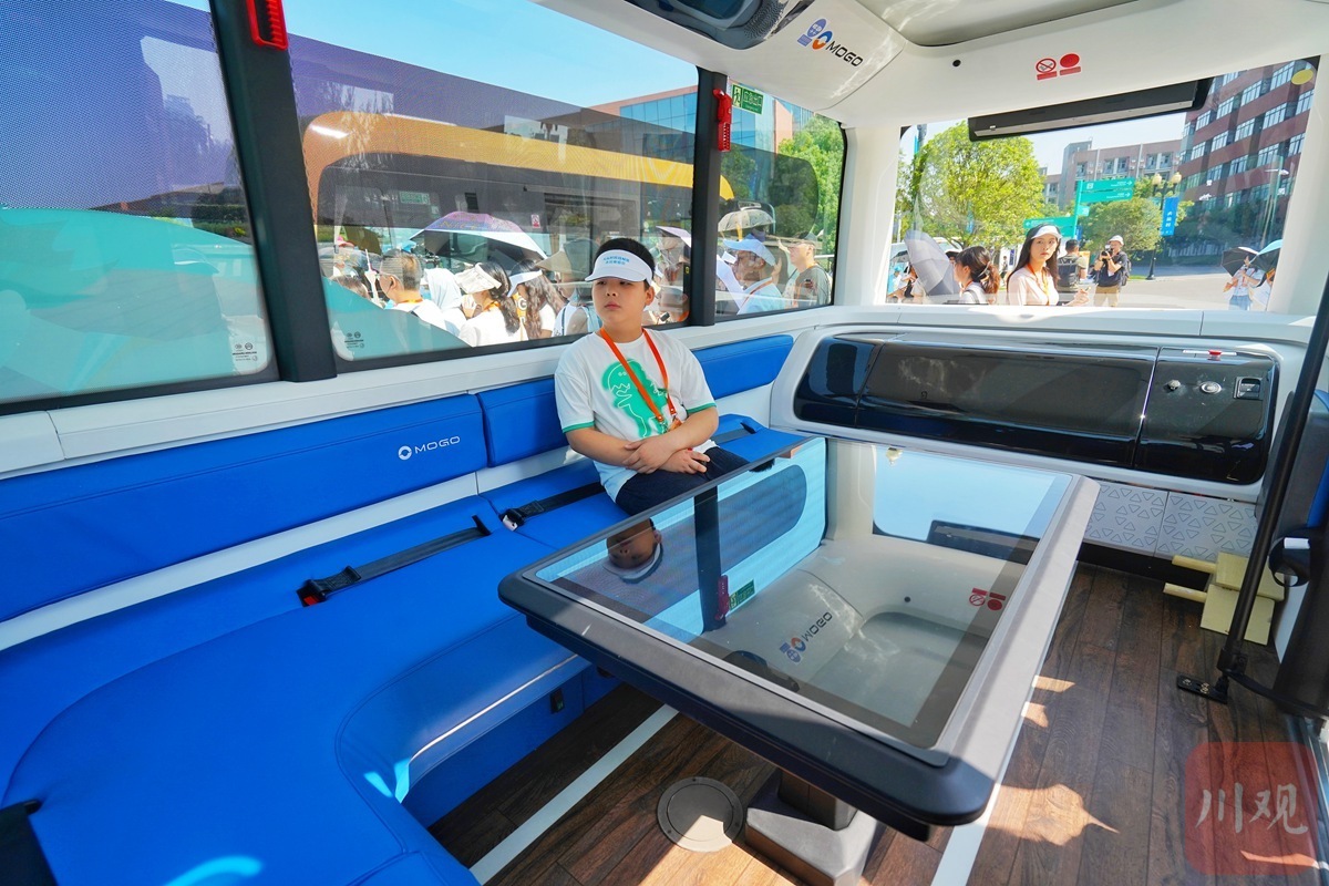 “快看,路上这辆车,是自动驾驶的!”伴随着一阵惊叹,一辆正在完成接驳任务的蘑菇车联自动驾驶巴士稳步而来。