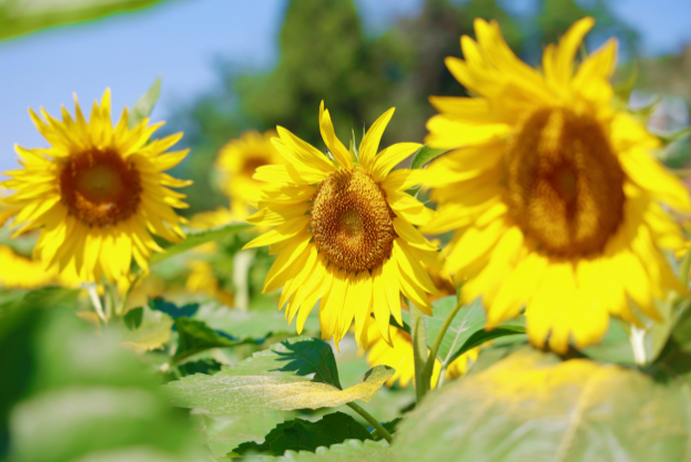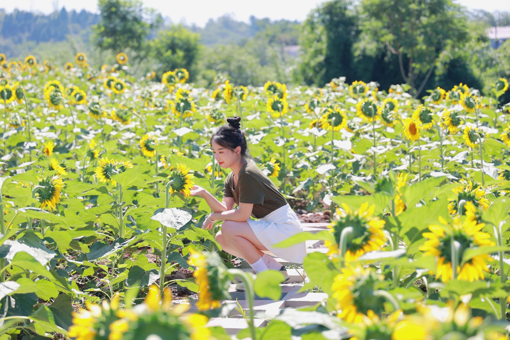 7月5日上午,在内江高新区高桥街道跳墩村向日葵基地,30亩金黄色的向日葵花海吸引游客驻足花田拍照打卡,连绵起伏的花朵在阳光照耀下金光闪闪,美不胜收,走进这片花海,仿佛置身一幅大自然的油画之中。