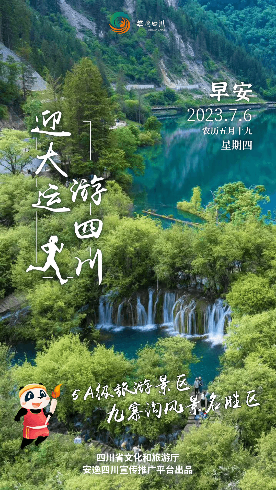 7月6日,星期四。今天安逸四川日历海报“迎大运、游四川”走进九寨沟,感受人间仙境的魅力。