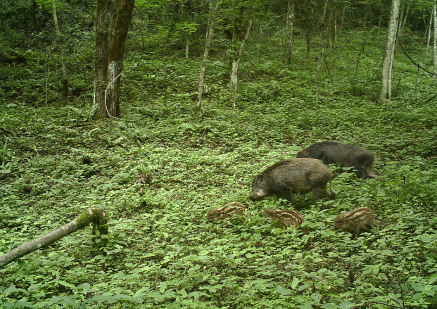 大熊猫国家公园北川片区国有林场红外相机拍摄到的野猪画面。 大熊猫国家公园绵阳管理分局供图