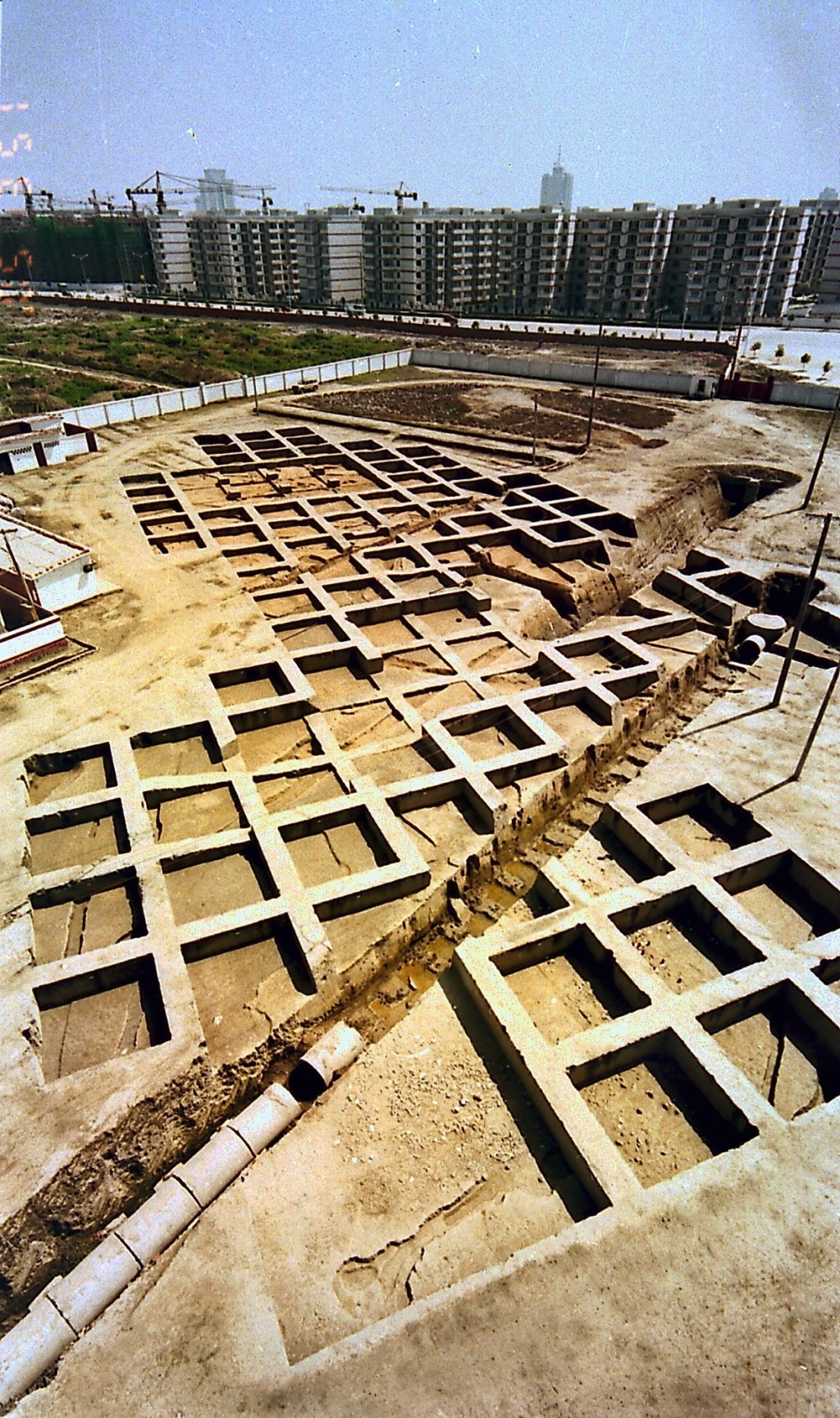 在商周时期甚至更早的新石器晚期,包括浙江良渚古城、陕西石峁以及成都宝墩遗址,都有高耸的城墙,三星堆遗址也有这个做法。然而,在商代,当商王将国都迁到安阳殷墟后,却没有修筑城墙。“因为商王朝当时非常强大,其他方国诸侯没有实力与之抗衡,无须修建工程浩大的城墙来保护都城。在被认为极可能是夏都的河南二里头遗址,迄今为止同样没有发现城墙。”