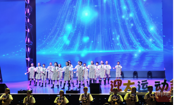 活动现场,来自成都市23个区(市)县的健美(啦啦)韵律操获奖队伍代表,带来了花球韵律操、街舞韵律操和轻器械韵律操的精彩表演,与舞台屏幕上宣传片里的中小学生们组成“千人共舞”,展现了成都青少年的青春活力,营造出喜迎大运盛会的热烈氛围。