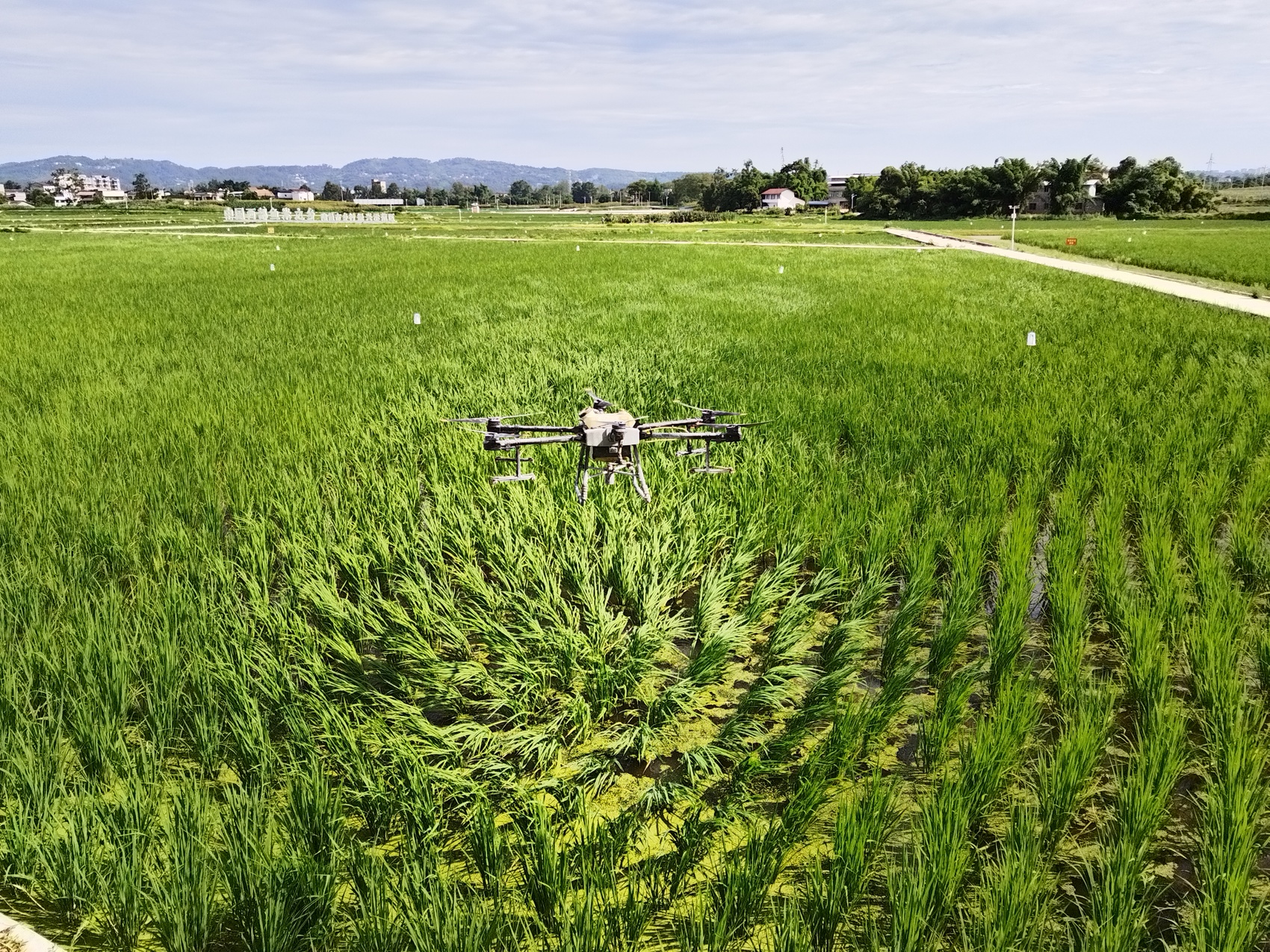 “这款无人机可负重60—70斤调配好的药水,一次性能喷洒15亩左右的稻田。”全副武装做足防护的无人机手苟子豪告诉记者,时下,水稻抽穗已进入尾声,正是防治水稻螟虫、纹枯病等主要病虫害的关键时期。在胡家镇双龙村等地,因为地势较为平坦,他每个小时可操纵无人机喷洒80余亩的稻田。