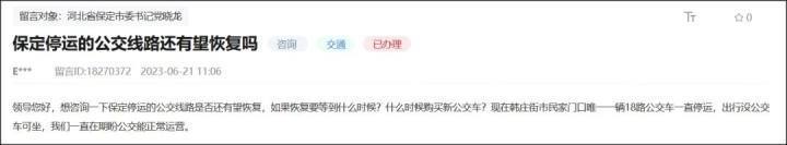 近日有河北保定网友通过人民网领导留言板咨询,保定停运的公交线路是否还有望恢复?如果恢复要等到什么时候?什么时候购买新公交车?