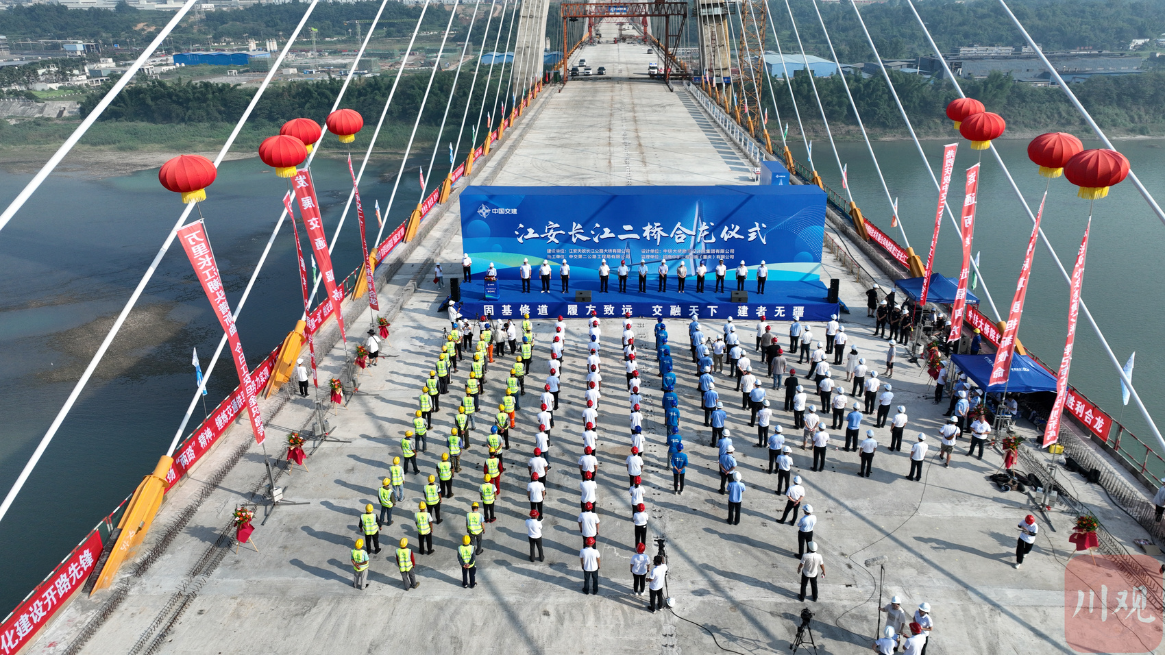 7月10日上午,随着最后一段重达65吨的合龙段钢梁准确就位,江安长江二桥顺利合龙,朝着今年10月具备通车条件再进一步。