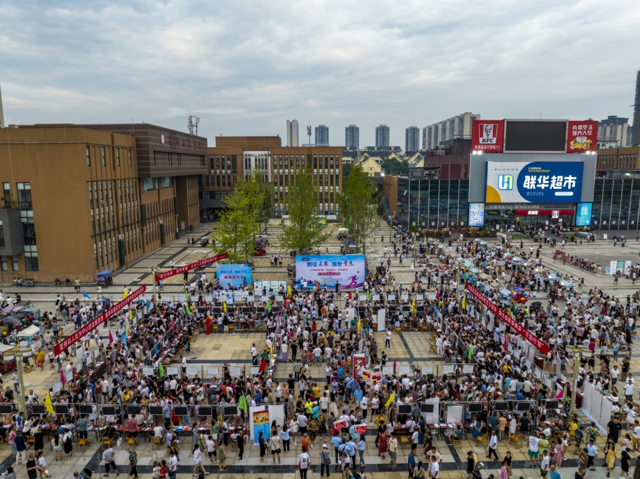 在人才市场、专场招聘会上找工作,是常见的求职方式。但是,在晚饭后遛弯散步时找工作,你见过吗?7月7日晚,四川德阳什邡市2023年“夏夜如火·求贤若渴”现场招聘会在什邡市群众文化活动中心“开张”,市民们散步纳凉间,就把工作找到了。