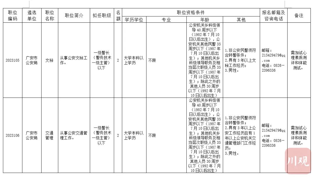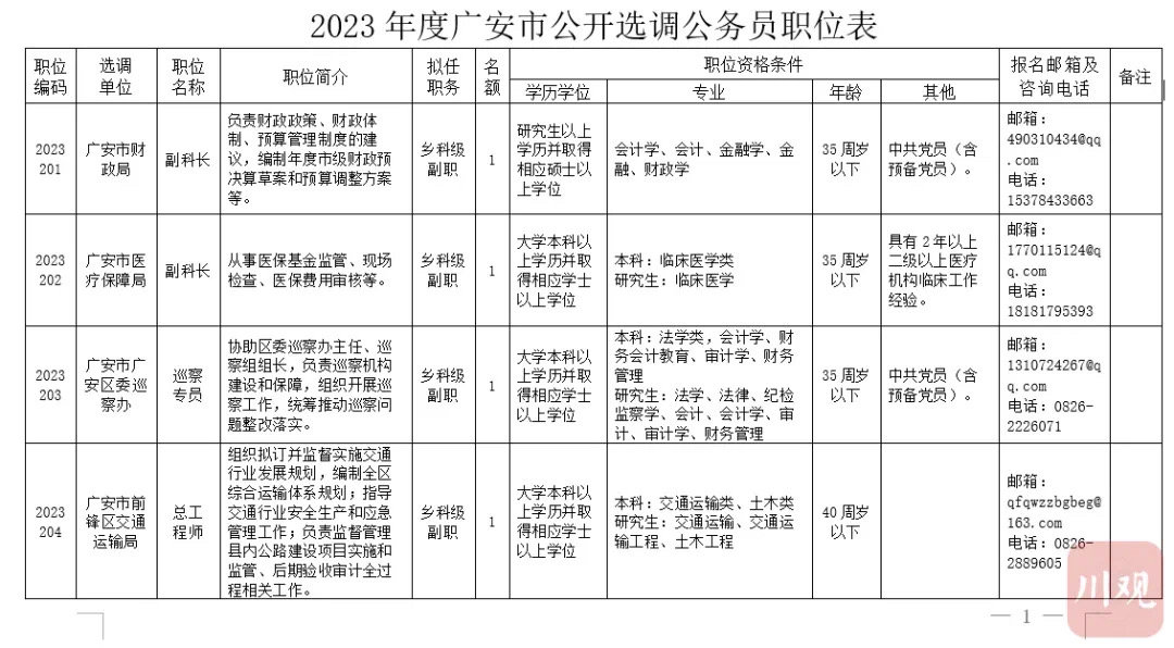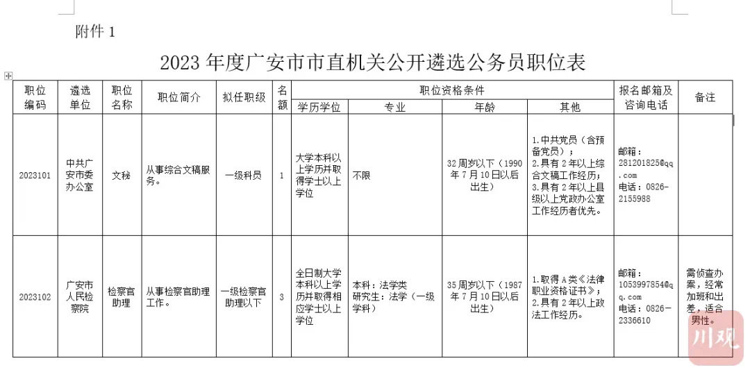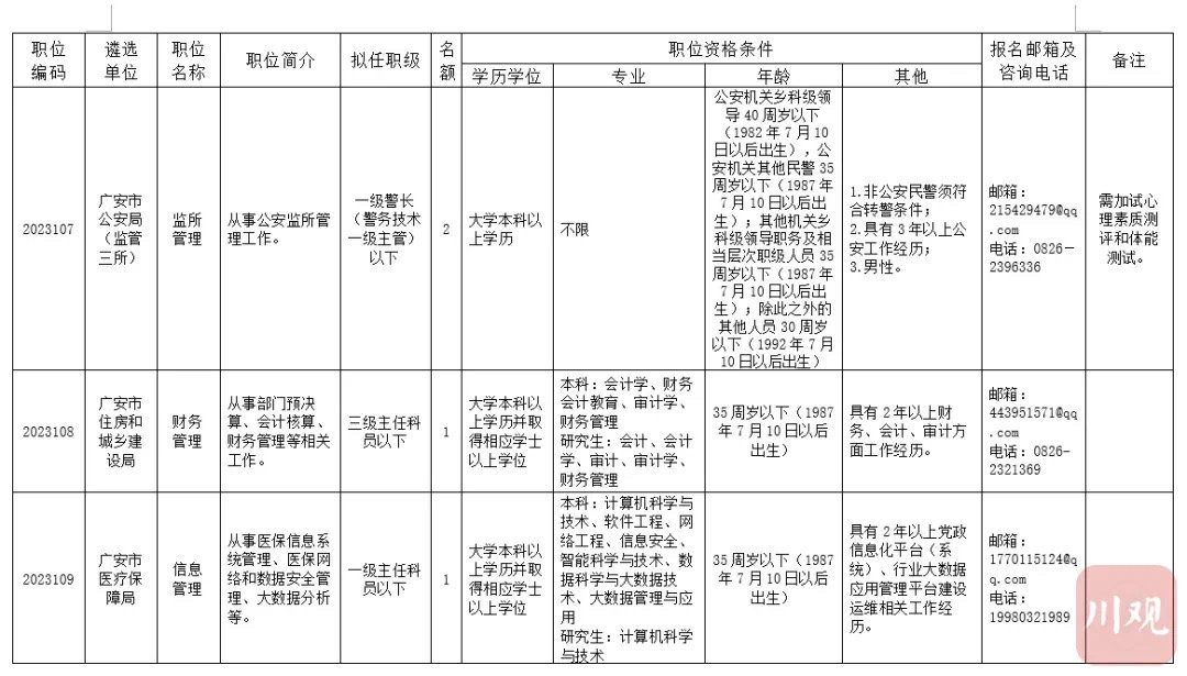 7月10日,川观新闻记者从广安市委组织部获悉,广安市启动2023年度公开遴选和公开选调公务员工作。