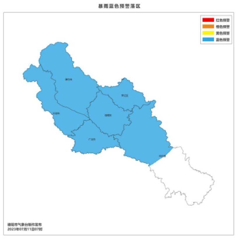 ★德阳市发布暴雨蓝色预警:预计7月11日8时至12日8时,全市有一次强降雨天气过程,雨量普遍大雨到暴雨(雨量40—70毫米),局部大暴雨(雨量100—120毫米),最大小时雨量30—50毫米,并伴有雷电、大风、短时强降水等强对流天气。