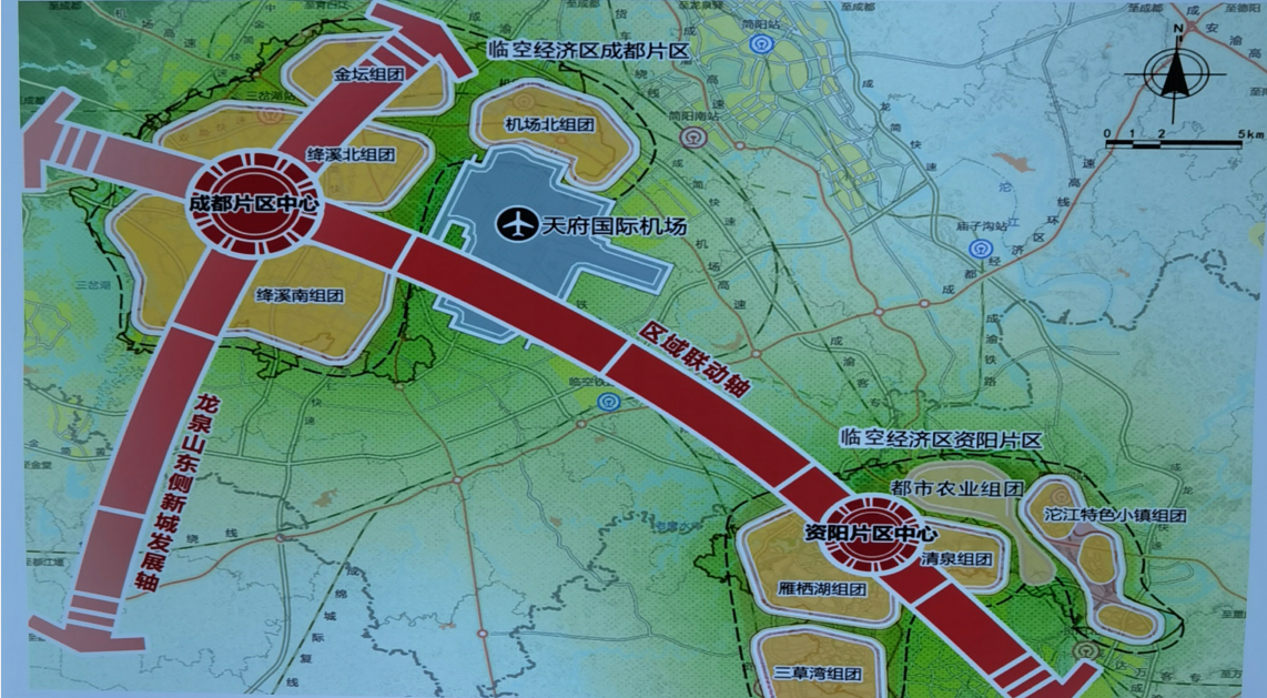 资阳临空经济区因天府国际机场而生。四川省政府印发的《成都天府国际机场临空经济区规划纲要》,明确天府国际机场临空经济区由成都、资阳两个片区组成,其中,资阳临空经济区幅员面积142平方公里,重点布局临空制造业、临空综合服务组团。地处成渝相向发展主轴的资阳临空经济区,距天府国际机场12公里、成都双流机场70公里、重庆江北机场190公里,这让国内外有战略眼光和超前视野的广大企业家看到了发展前景,纷纷入户资阳,共享发展机遇。