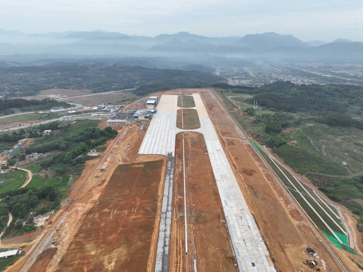 北川通用机场正在抓紧建设的跑道。 北川融媒体中心供图