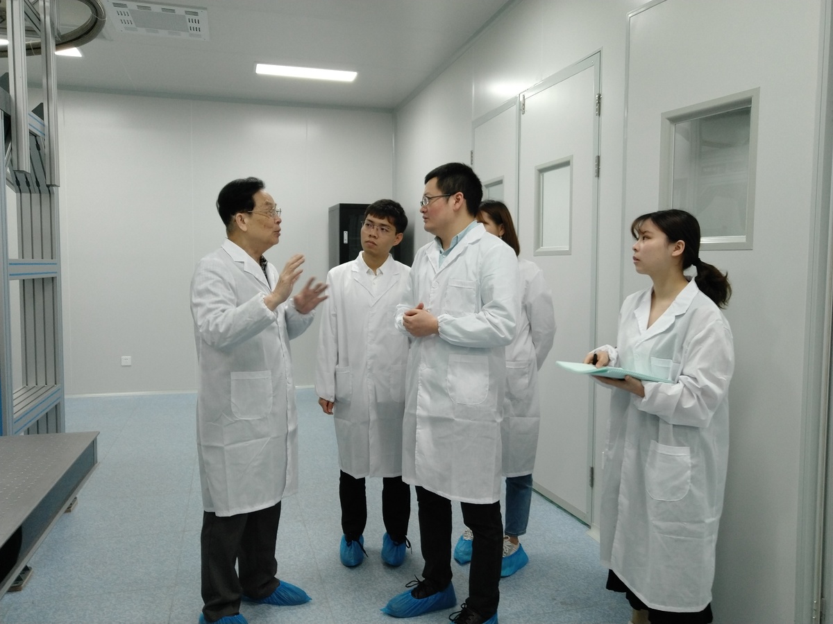 中国科学院院士郭光灿与电子科技大学信息与量子实验室成员交流。
